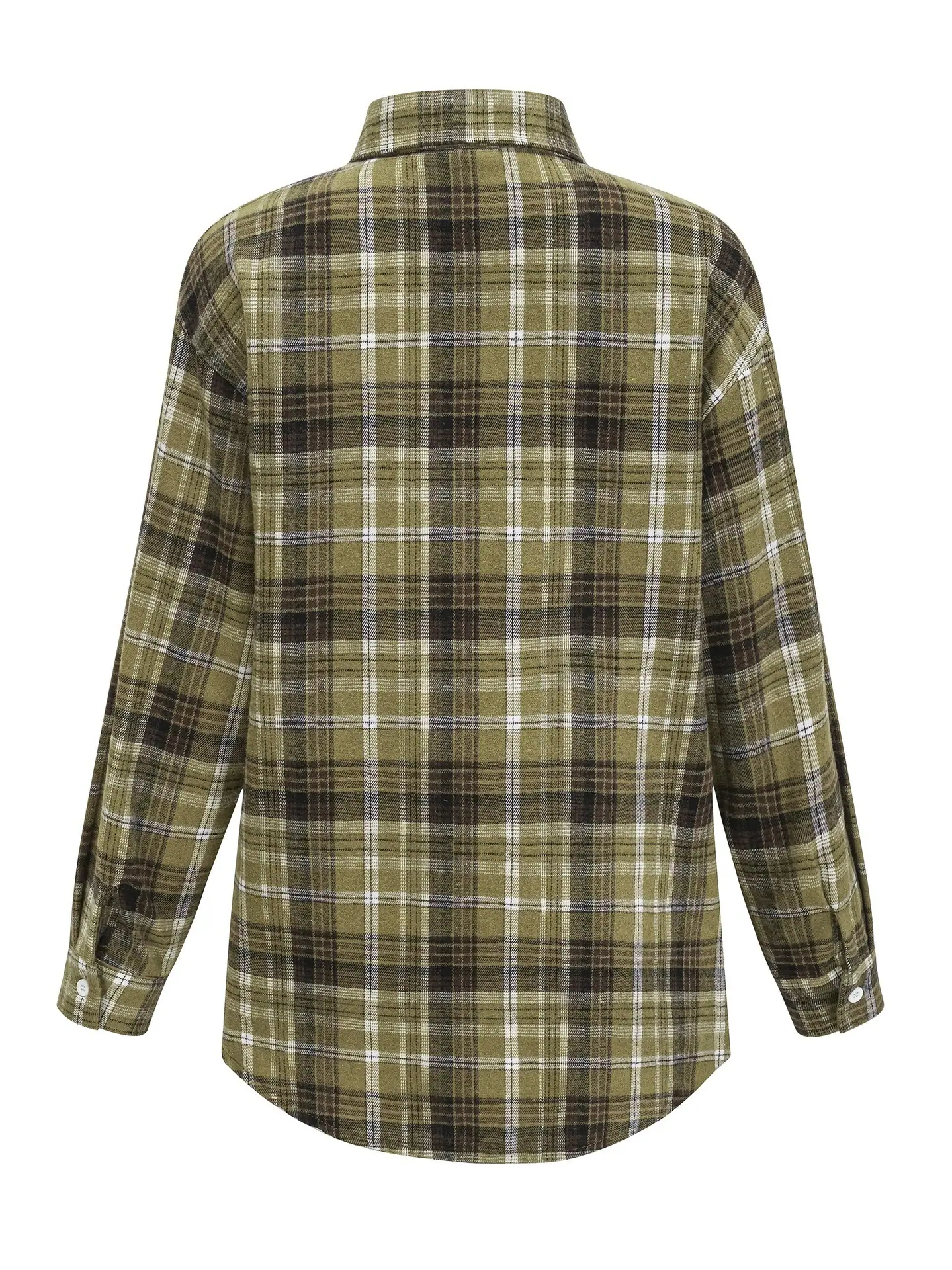 2025 Nueva Camisa a Cuadros de Primavera Transfronteriza Cepillada Suelta de Talla Grande para Mujer, Camisa de Manga Larga con Protección Solar Estilo Retro Hong Kong
