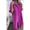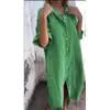 2025 Nuevo Estilo Europeo y Americano Primavera y Verano Suelto Casual Manga Media Algodón y Lino Vestido Camisero para Mujer