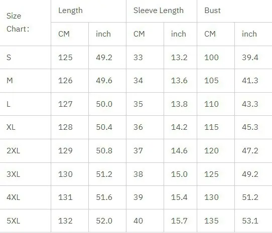 S, M, L, XL, XXL, XXXL, 4XL, 5XL