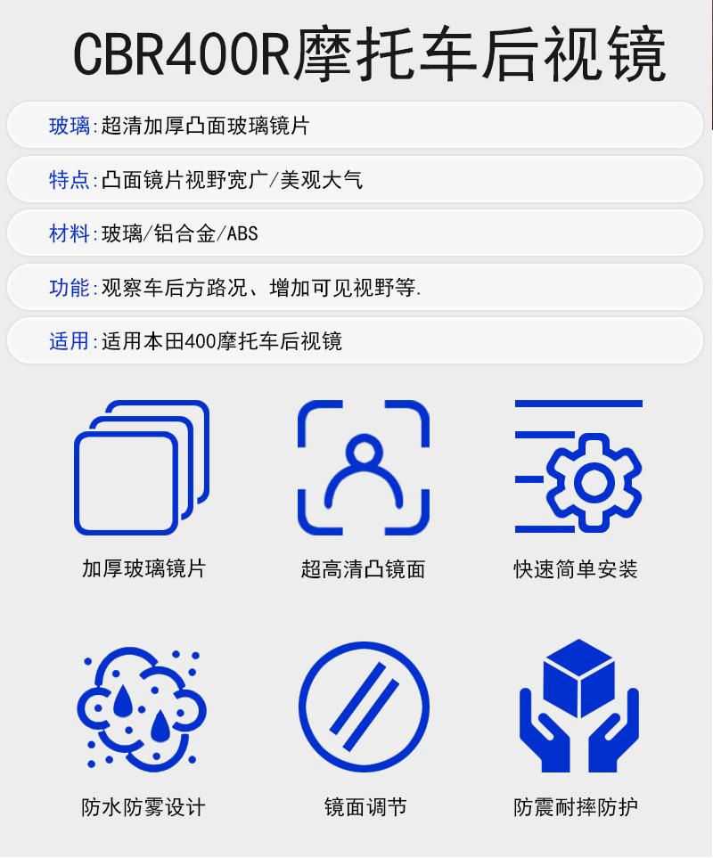 Suministro de fábrica al por mayor adecuado para el conjunto de espejo retrovisor de motocicleta Honda CBR400R, piezas puras