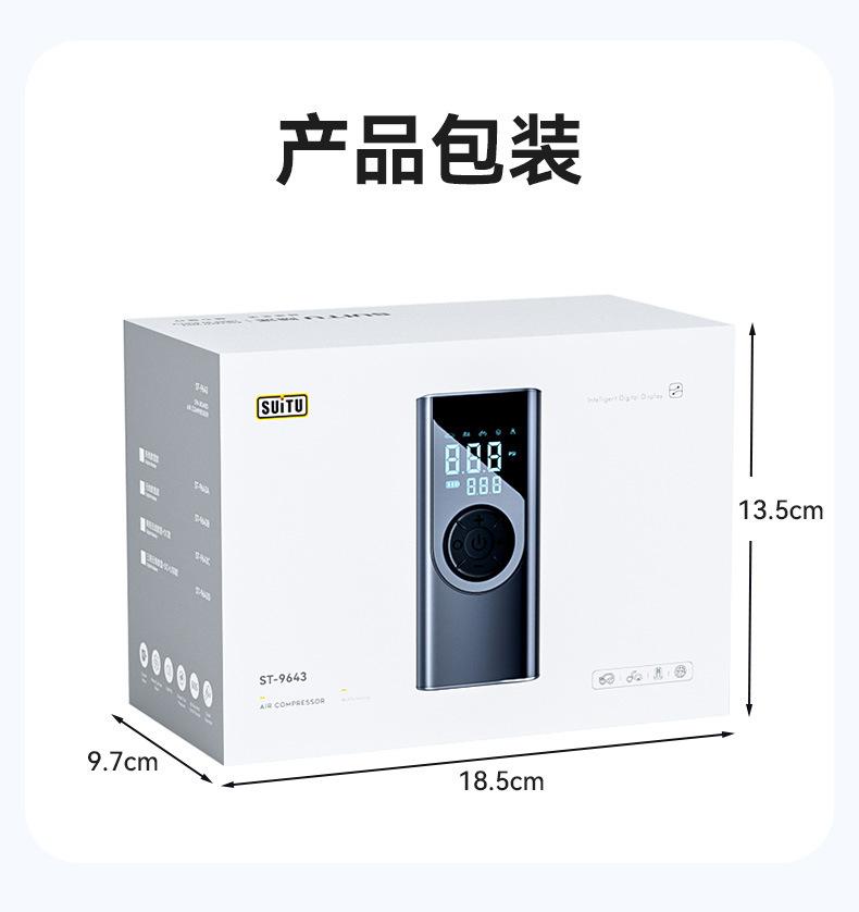 【ST-9643D】Bomba de aire de doble pantalla - pantalla digital inalámbrica + cargador de coche CC + batería externa USB negro 11.1V
