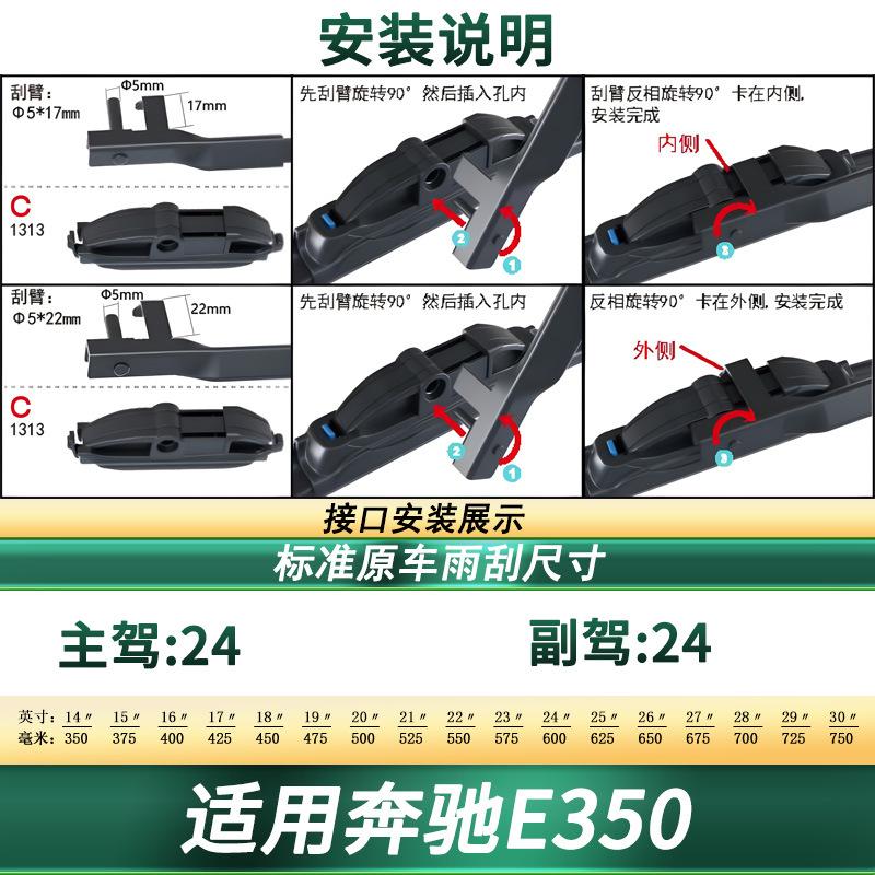 Adecuado para Mercedes-Benz E350/E350L/eL, limpiaparabrisas delantero con tira de goma silenciosa sin hueso especial para coche original