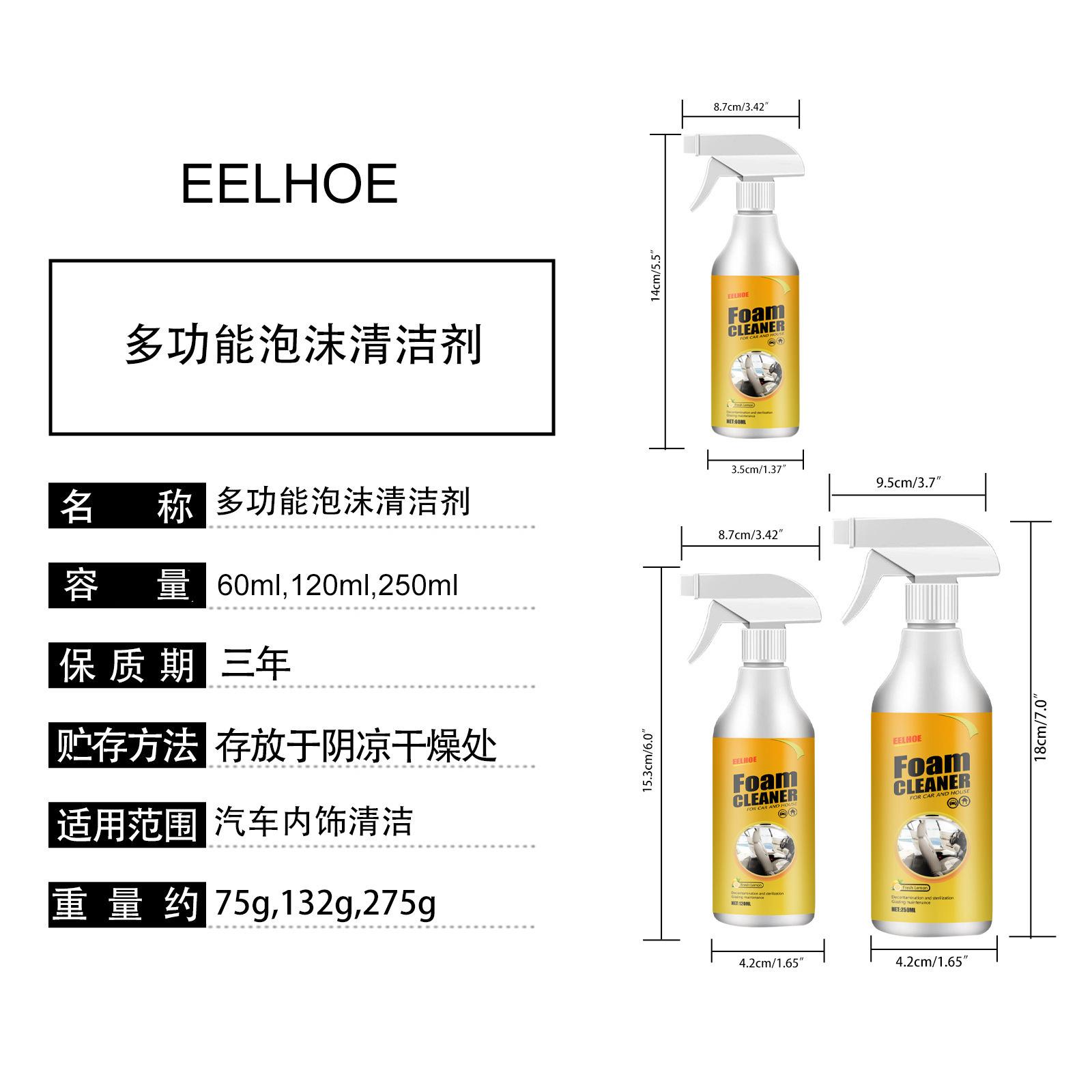 Limpiador de espuma multifuncional EELHOE transfronterizo, limpiador de cabezal de espuma descontaminante, limpieza de interiores, asiento, coche