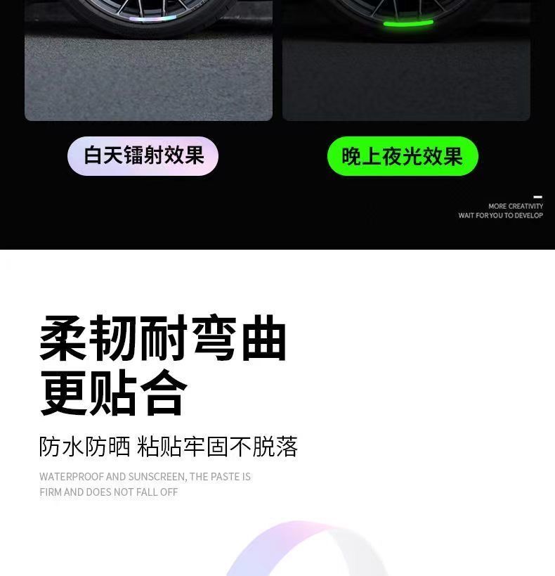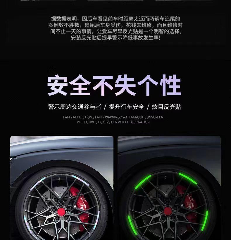 Calcomanía Reflectante para Rueda de Coche Luminosa Anticolisión Bicicleta Eléctrica Motocicleta Decoración de Neumático Calcomanía Colorida Fluorescente