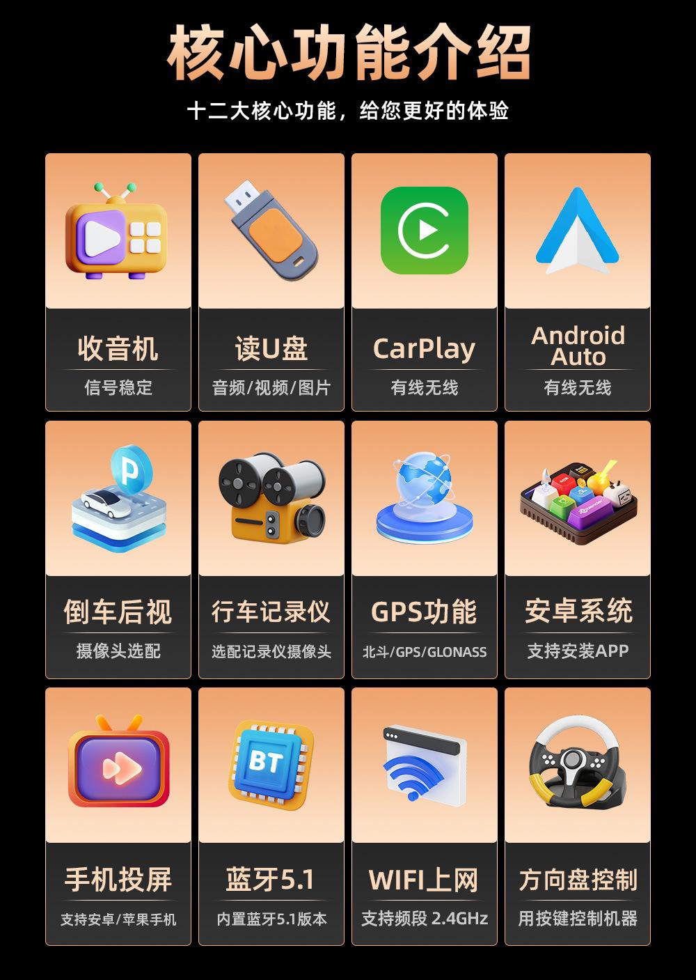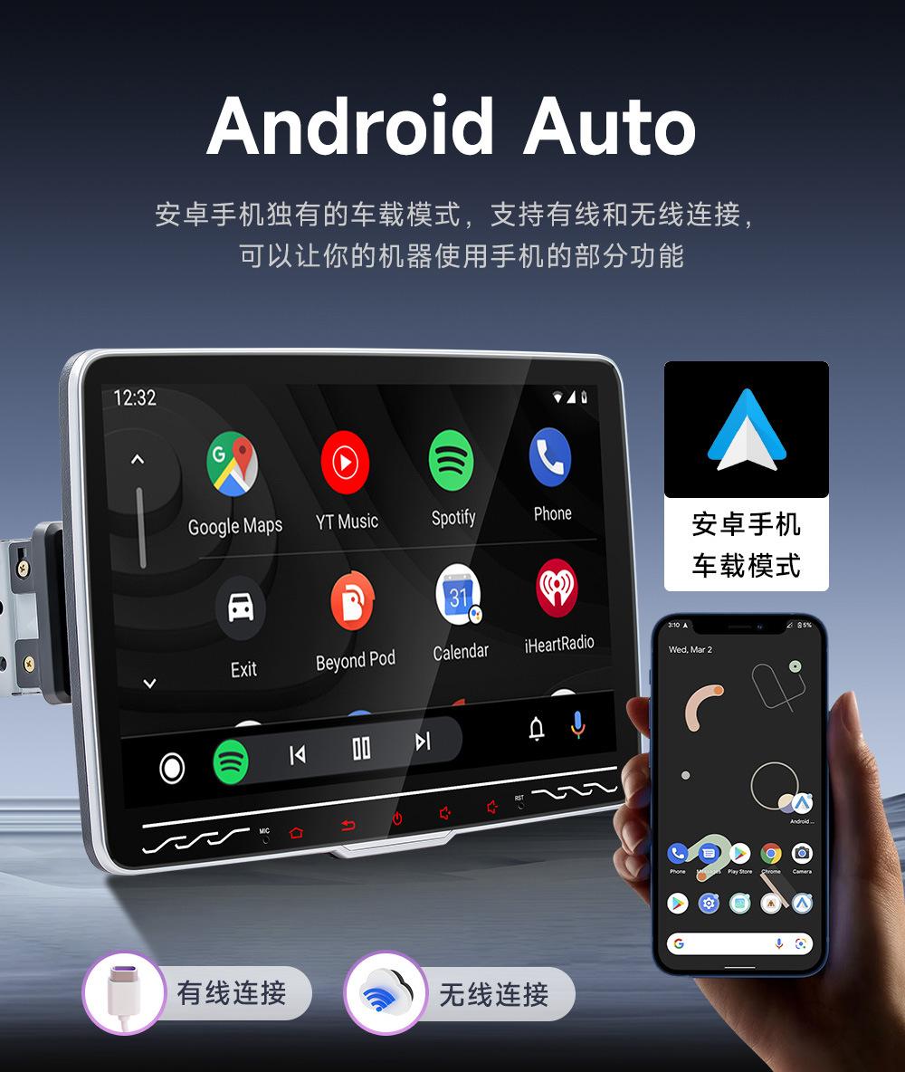 • Modo automóvil de teléfono móvil, conéctese a CarPlay o Android Auto para permitir que su máquina use las funciones del teléfono móvil