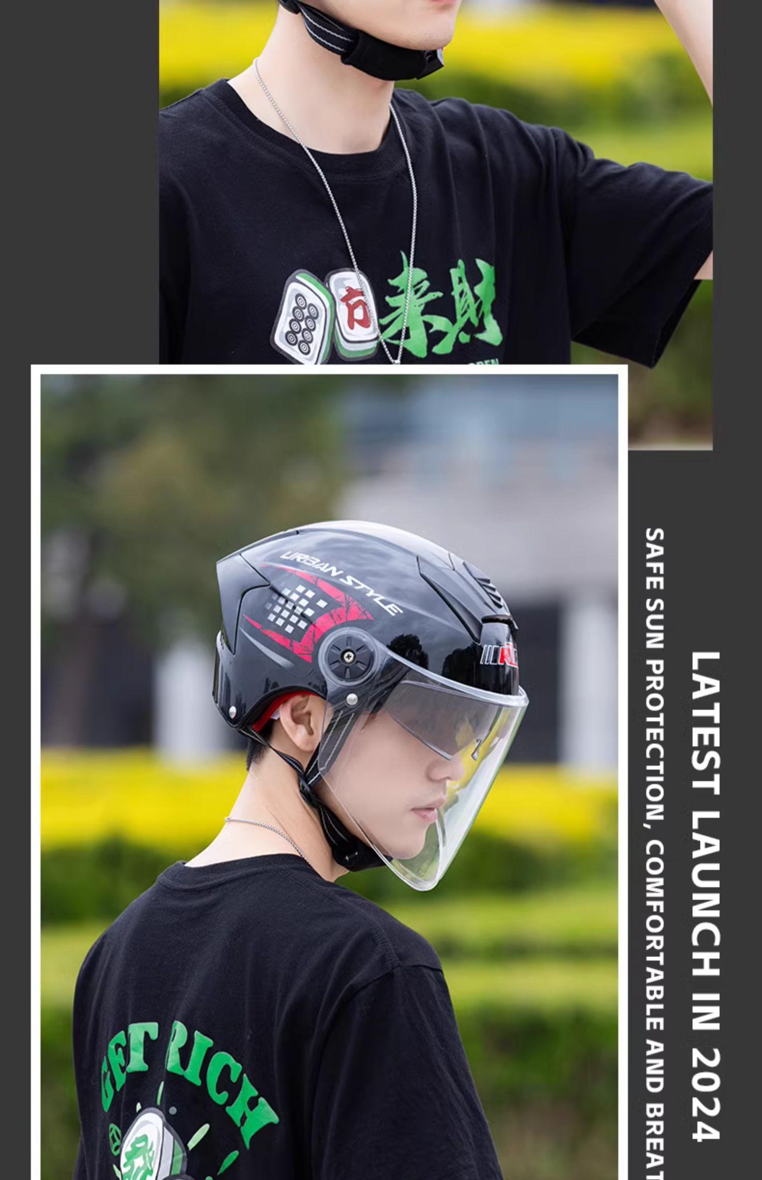 Casco de motocicleta eléctrico con certificación 3C para hombre y mujer, casco universal de verano para las cuatro estaciones, con batería y protector solar para coche.