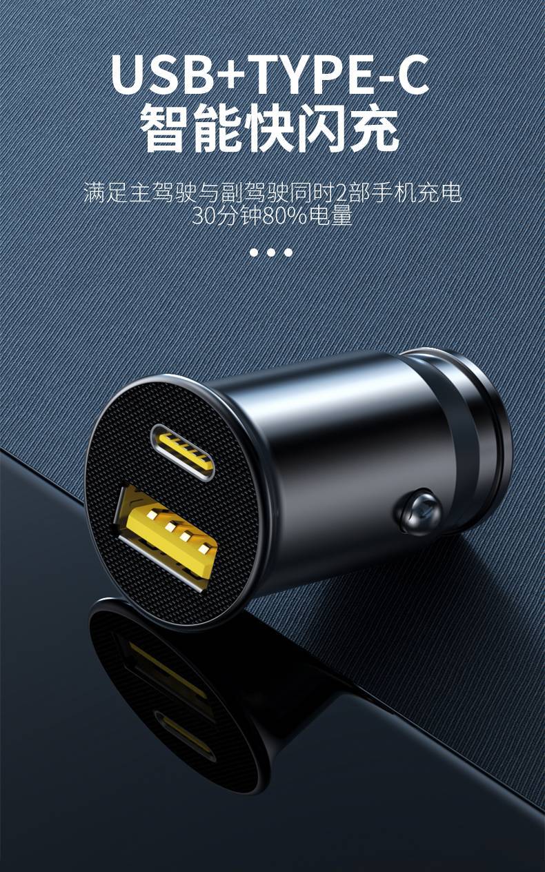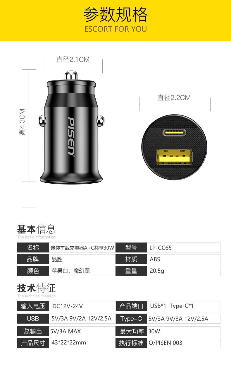 Compra Cargador de coche Pinsheng PD30W con un solo puerto y dos puertos USB tipo C. Compatible con Apple y Android. Cargador universal. al por mayor en Joom.pro