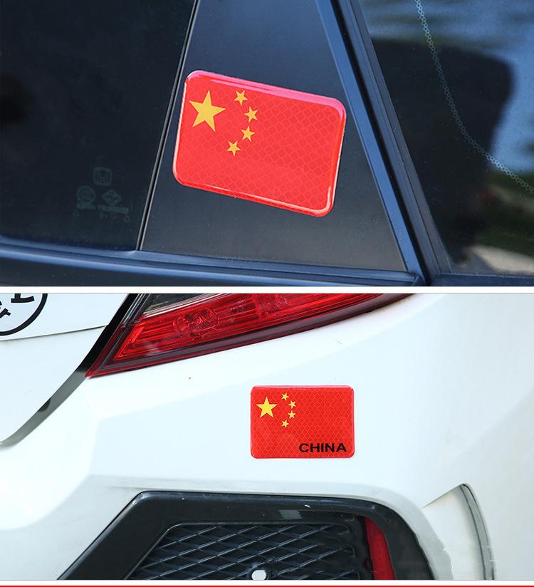 Pegatina de bandera reflectante 3D con pegamento de gota, pegatina decorativa de bandera de cinco estrellas para mantener la distancia entre autos, pegatina creativa para cubrir arañazos, pegatina de advertencia aleatoria