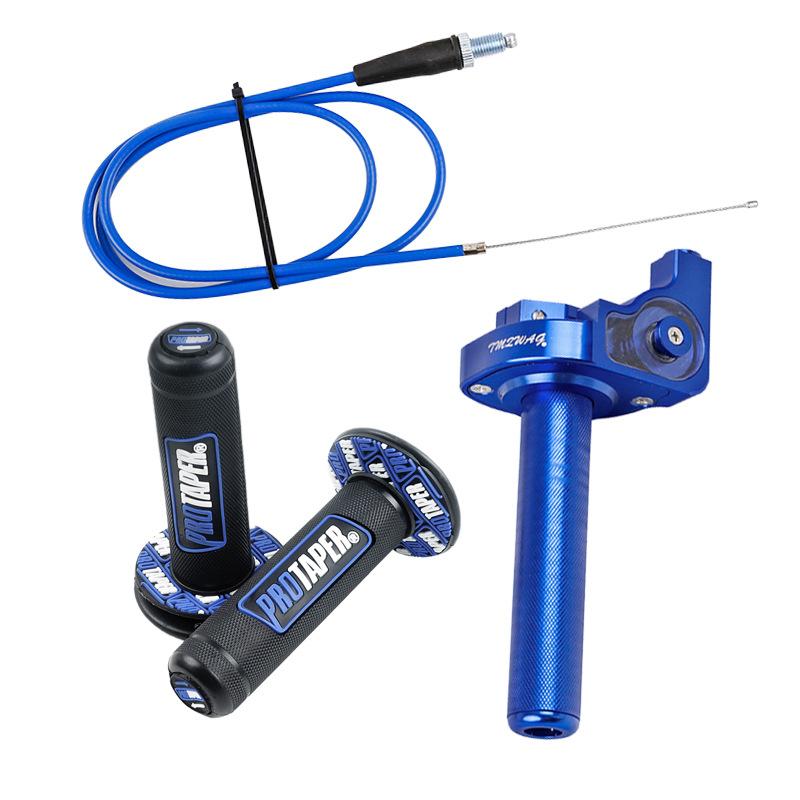 Cnc large twist oil blue + blue throttle cable + blue pro handlebar cover