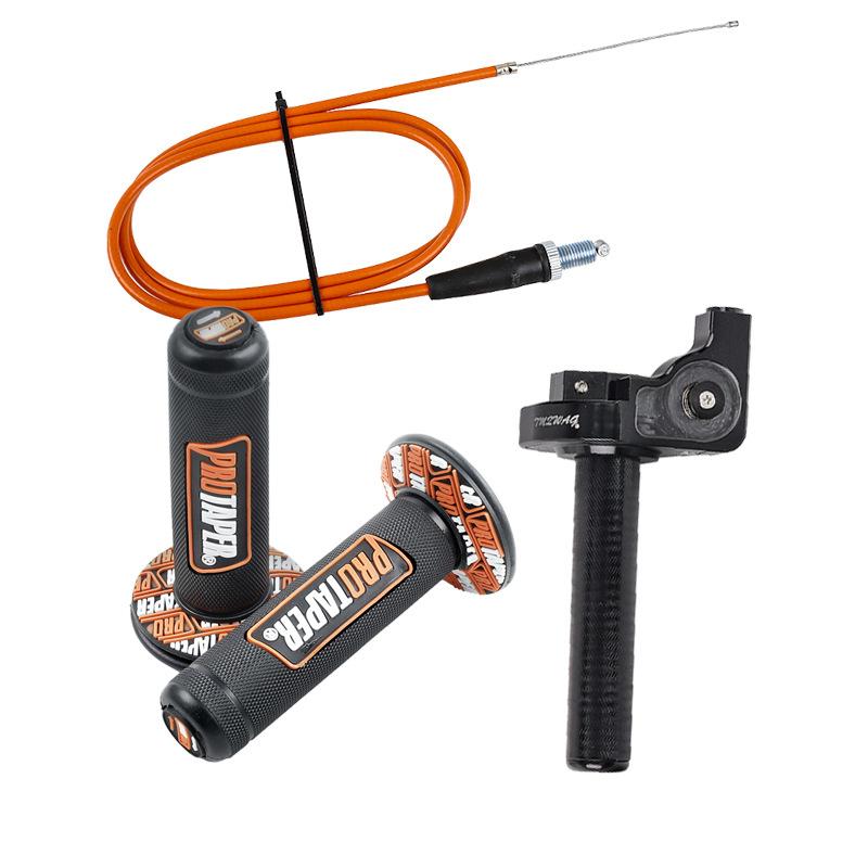 Cnc large twist oil black + orange throttle cable + orange pro handlebar cover