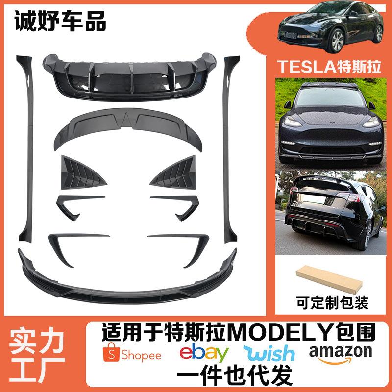Adecuado para Tesla ModelY labio delantero falda lateral labio trasero persiana de cola placa de hoja cuchillo de aire barra delantera cuchillo de aire