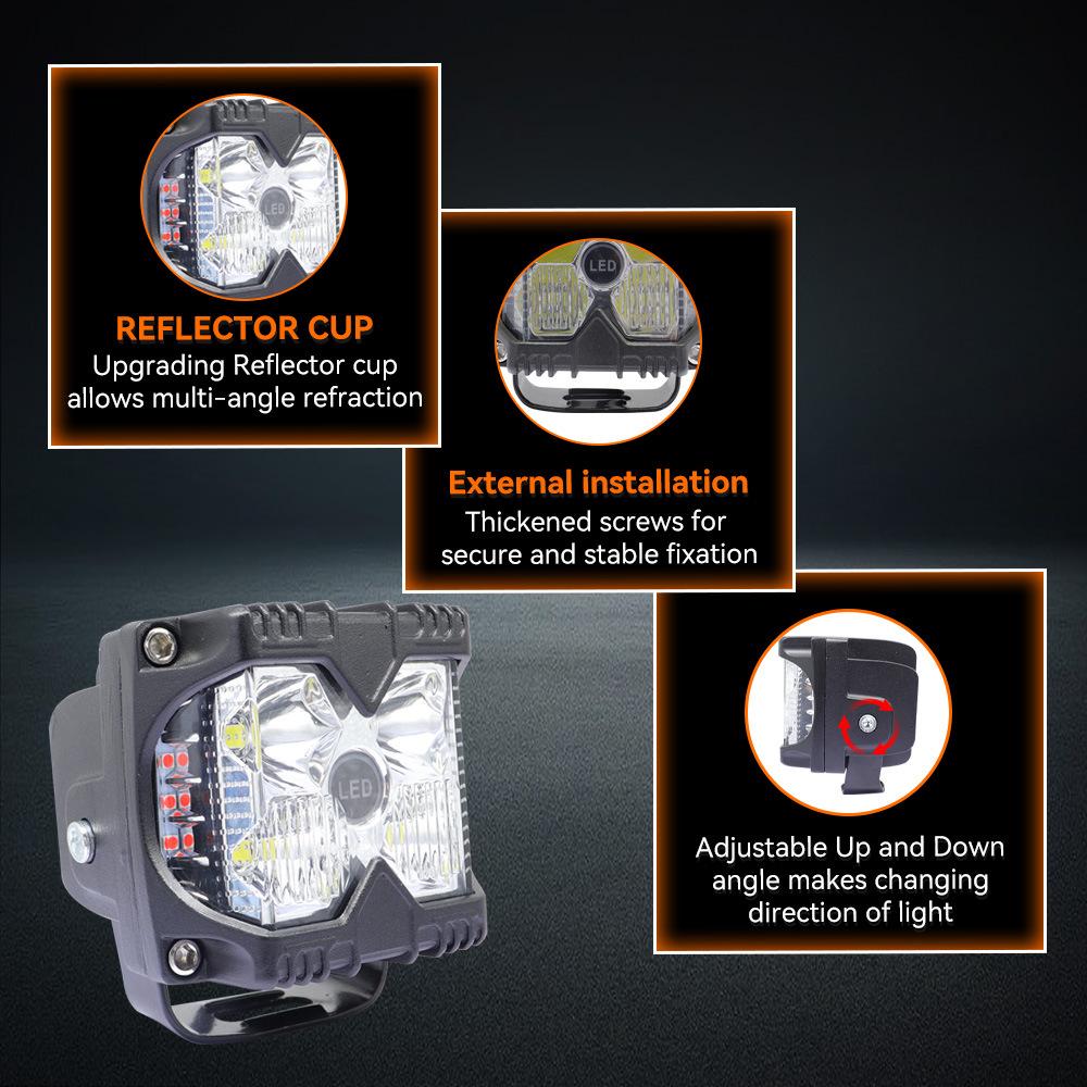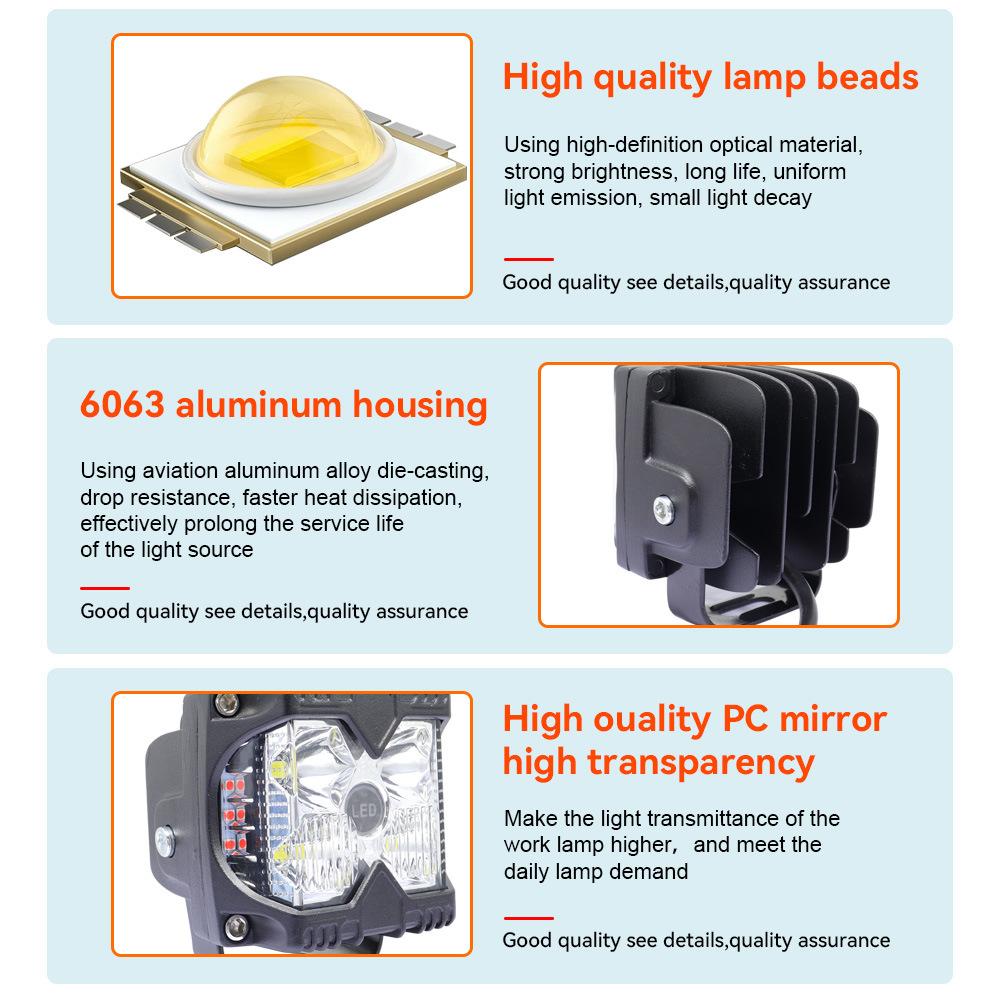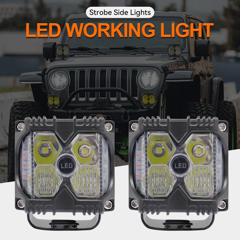 Nueva luz de trabajo luminosa de tres lados de 3 pulgadas para automóvil, luz LED modificada para automóvil, motocicleta, vehículo todoterreno, faro brillante