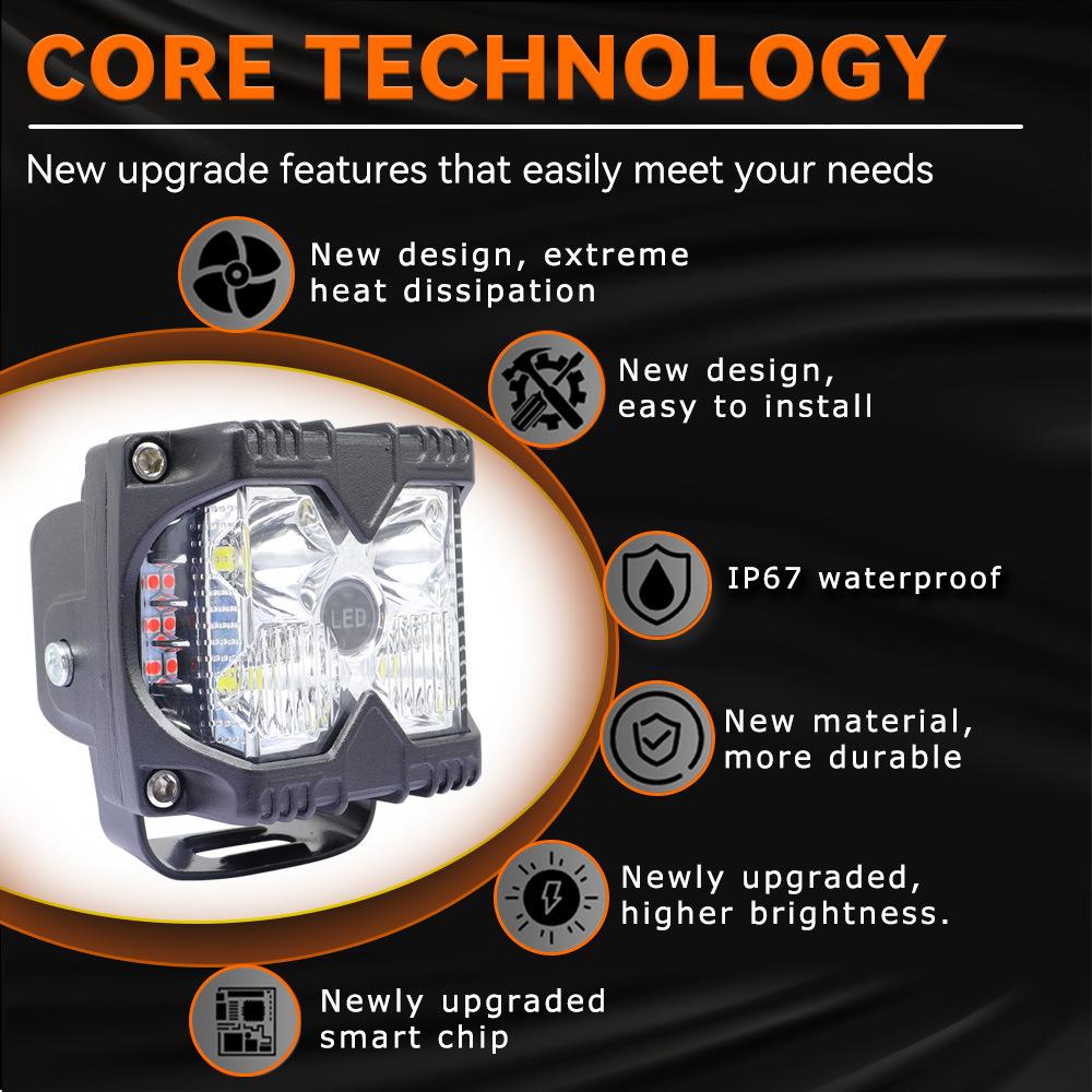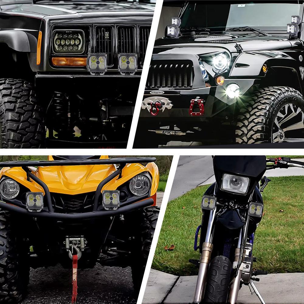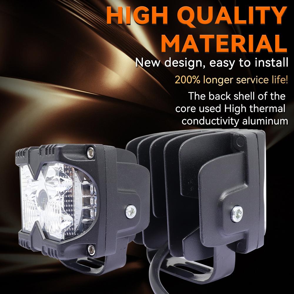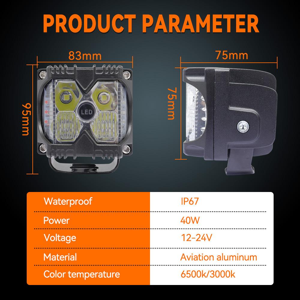 Nueva luz de trabajo luminosa de tres lados de 3 pulgadas para automóvil, luz LED modificada para automóvil, motocicleta, vehículo todoterreno, faro brillante