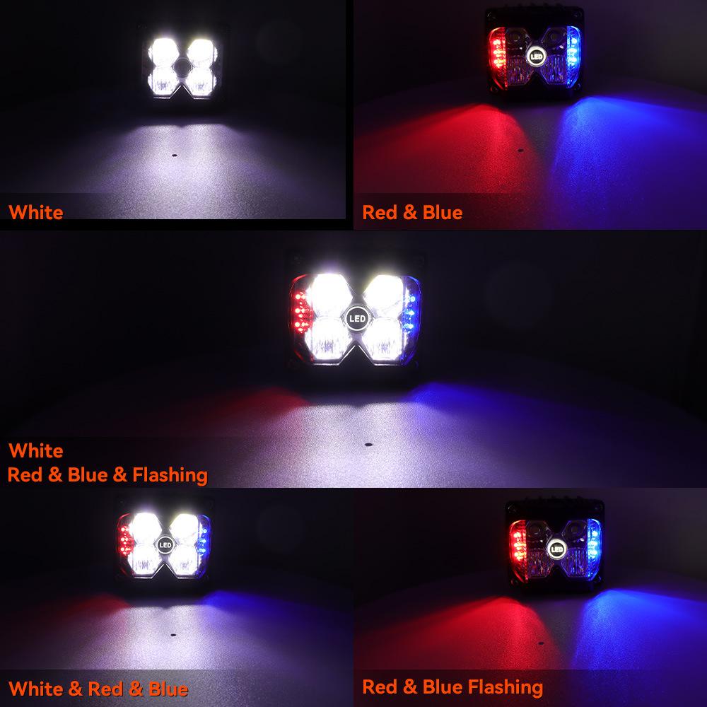 White light always on + red and blue flashing, Yellow light always on + red and blue flashing