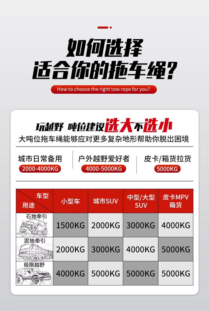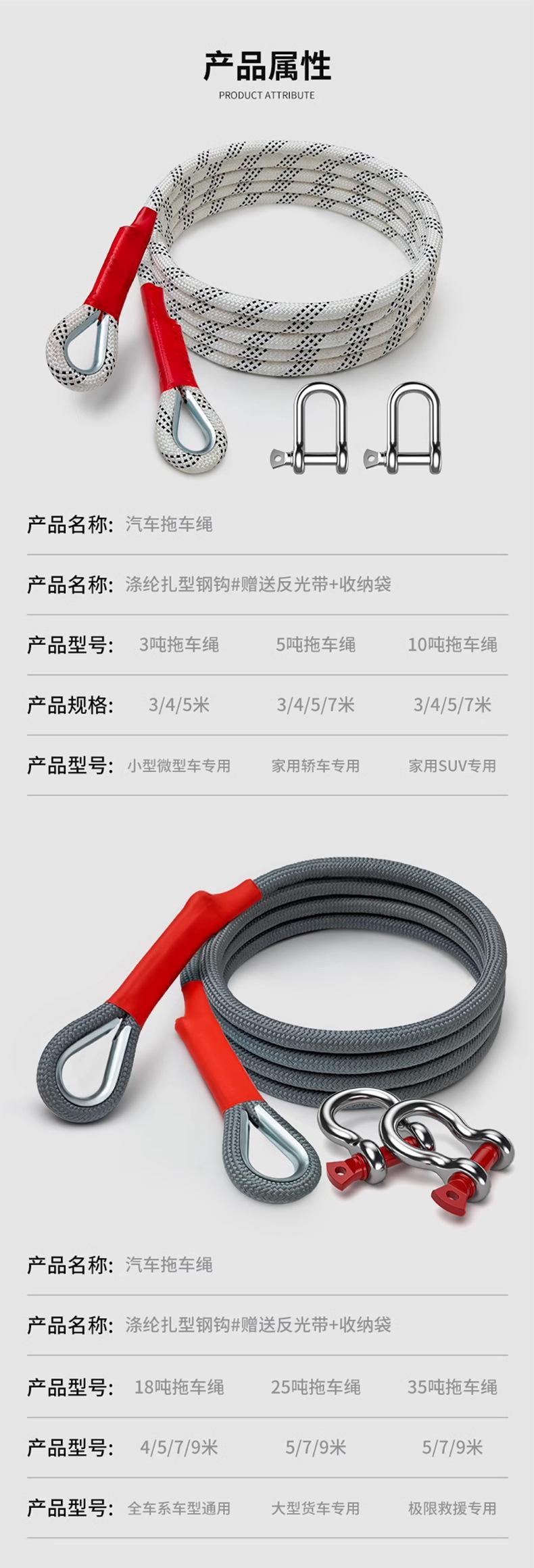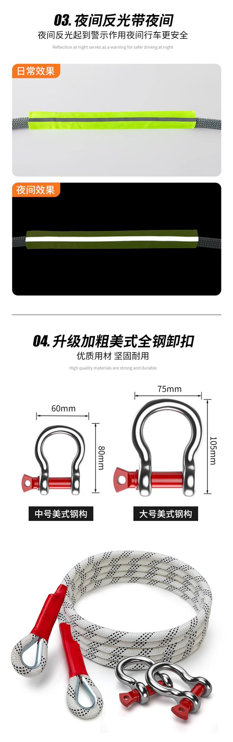 Artefacto de remolque de automóvil todoterreno, cuerda de tracción gruesa especial, cuerda de tracción de camión, cuerda de rescate de automóvil, venta al por mayor
