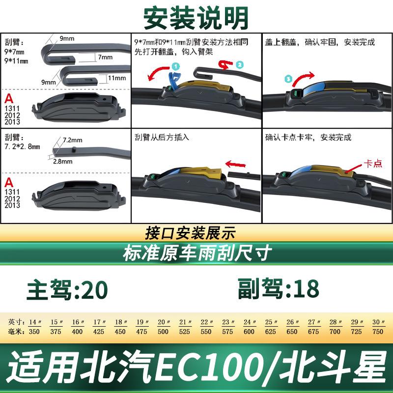Adecuado para limpiaparabrisas delantero BAIC EC100/EV2, universal, original, especial, sin hueso, con tira de goma silenciosa