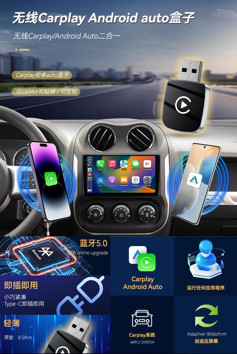 Q1u silver white label metal + glass android auto 2-in-1 carplay box is only suitable for overseas systems, Q1...