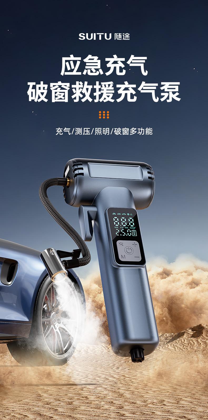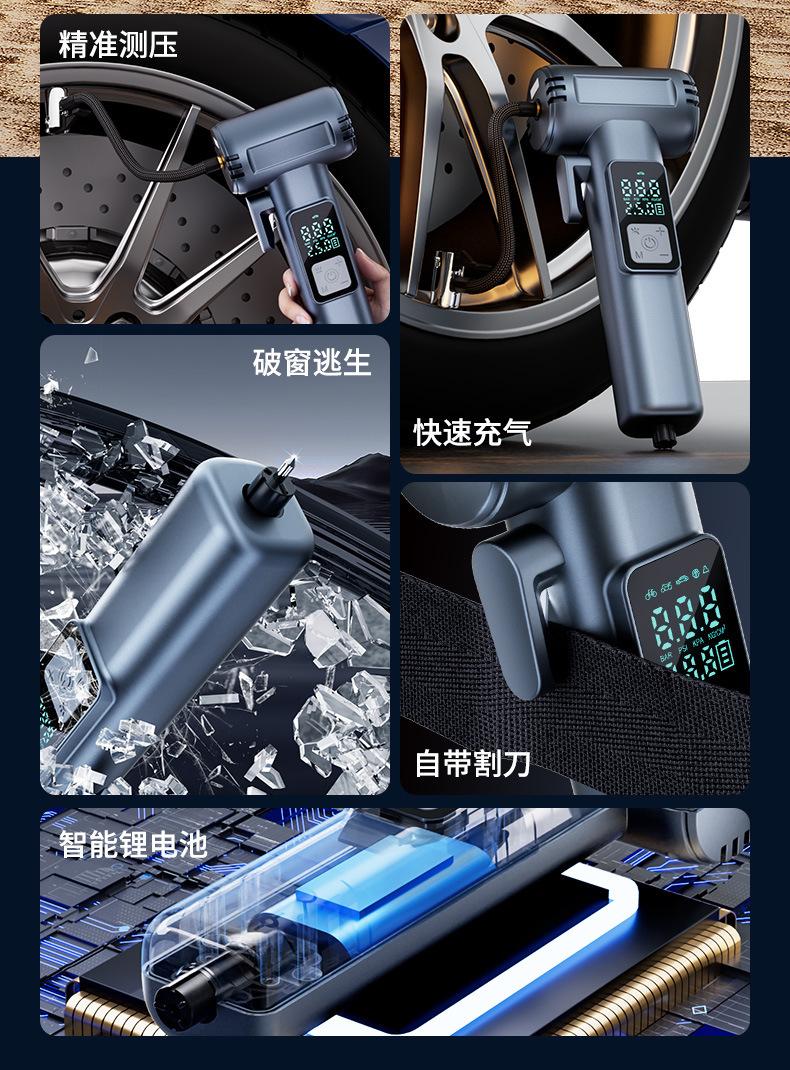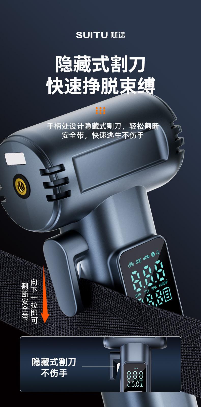 [Nombre del producto]: Bomba de aire multifuncional [con función rompecristales, con función cuchillo cortador]