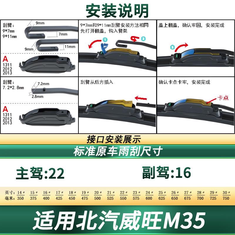 Adecuado para Limpiaparabrisas de Coche Baic Weiyang M35 Limpiaparabrisas Especial Original para Coche Multifuncional Sin Huesos Silencioso