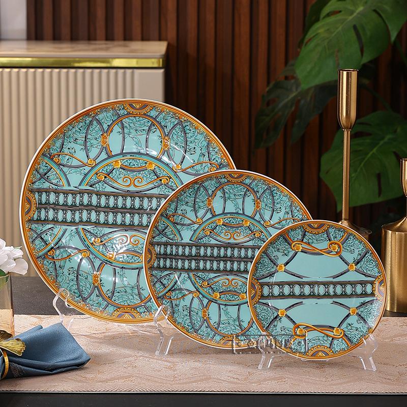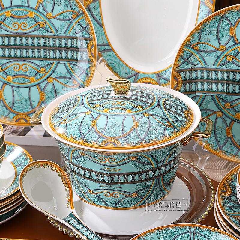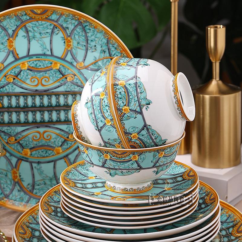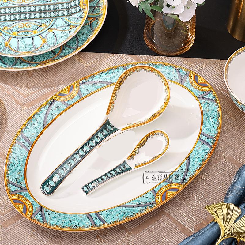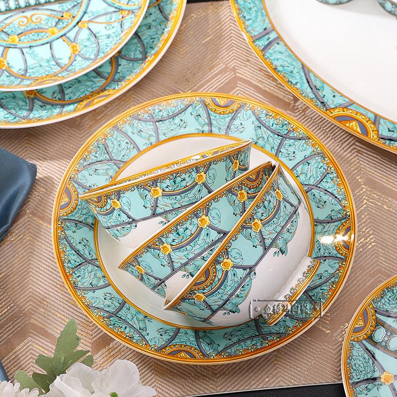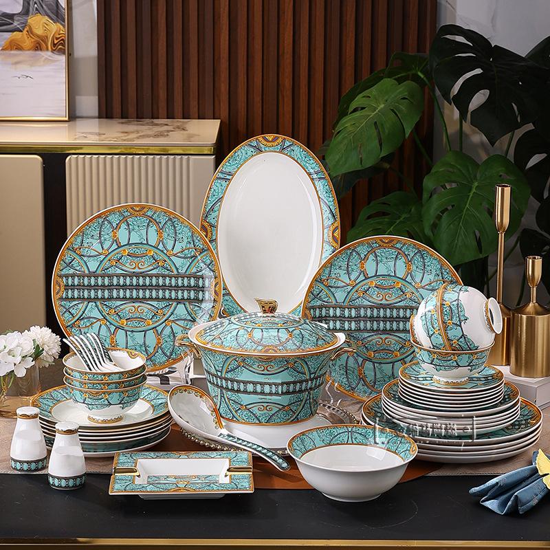 Cuenco de cerámica creativo y popular en Internet, plato para cubiertos, cuenco ligero de lujo con bajo vidriado, colorido plato de estilo occidental, plato para carne, vajilla combinada para el hogar de 43 piezas.