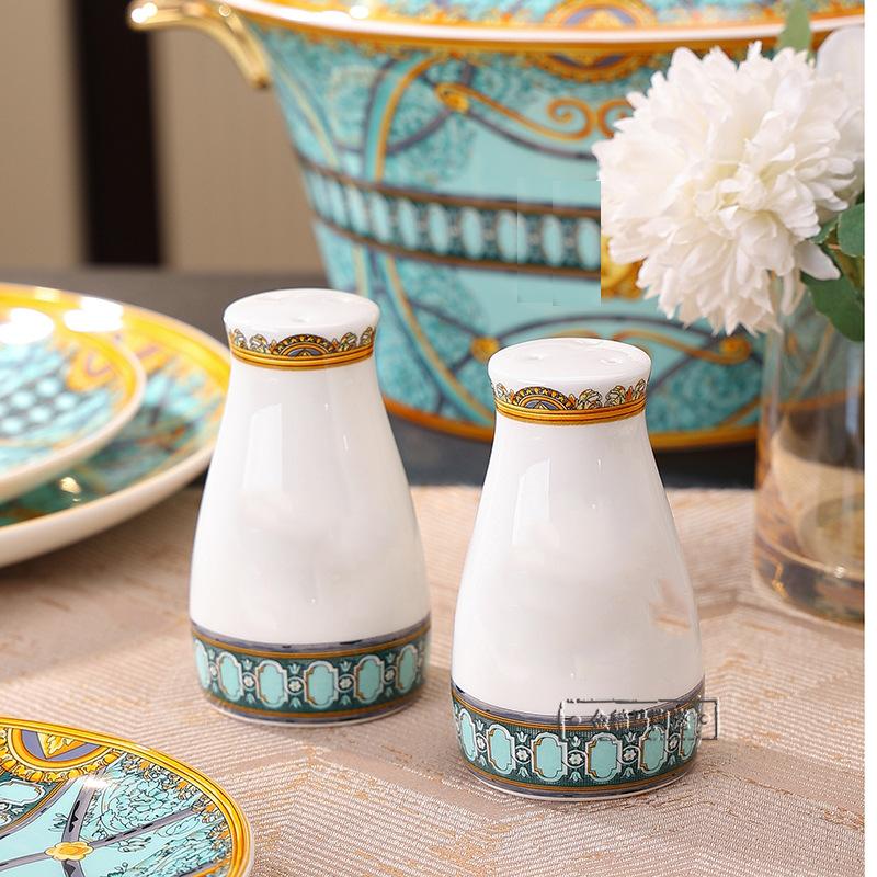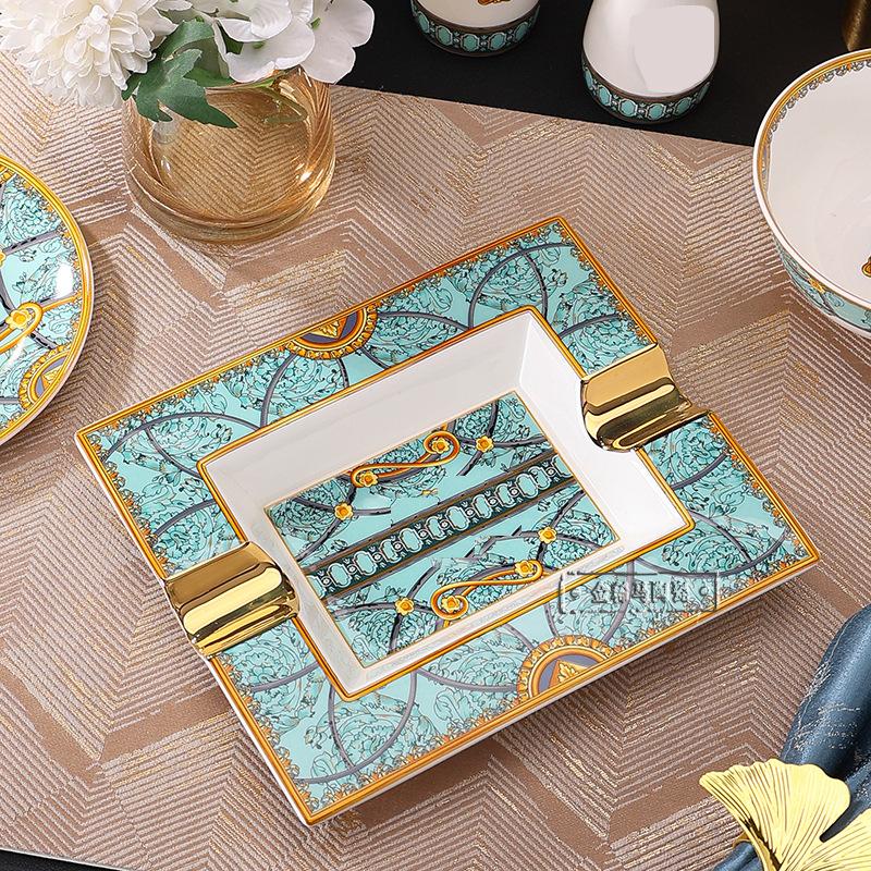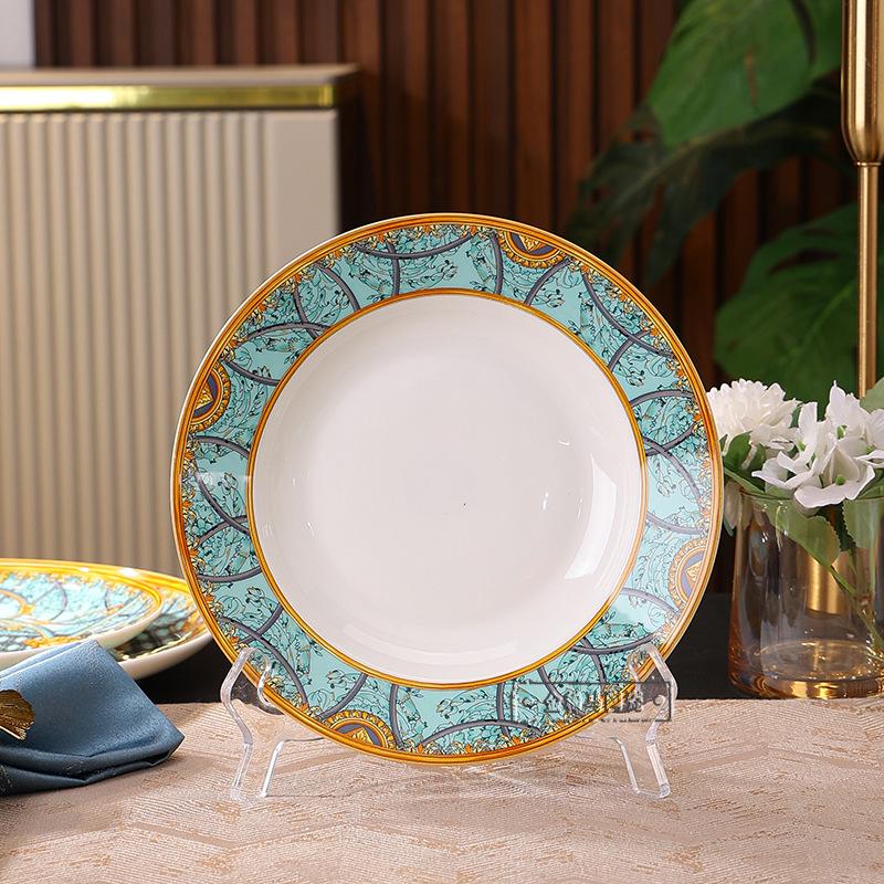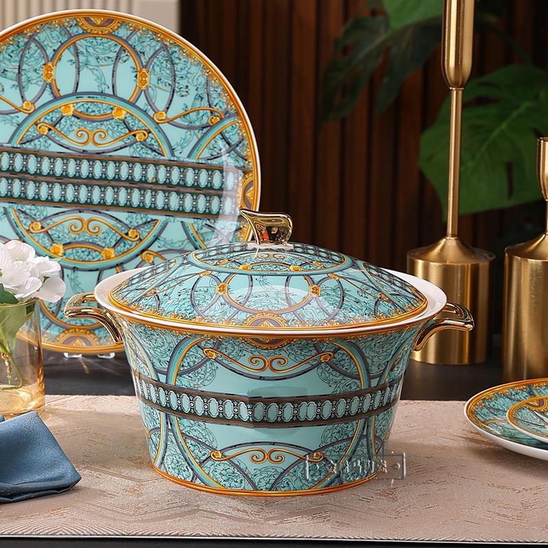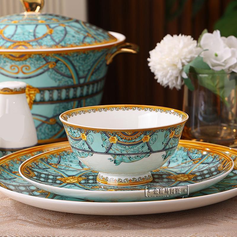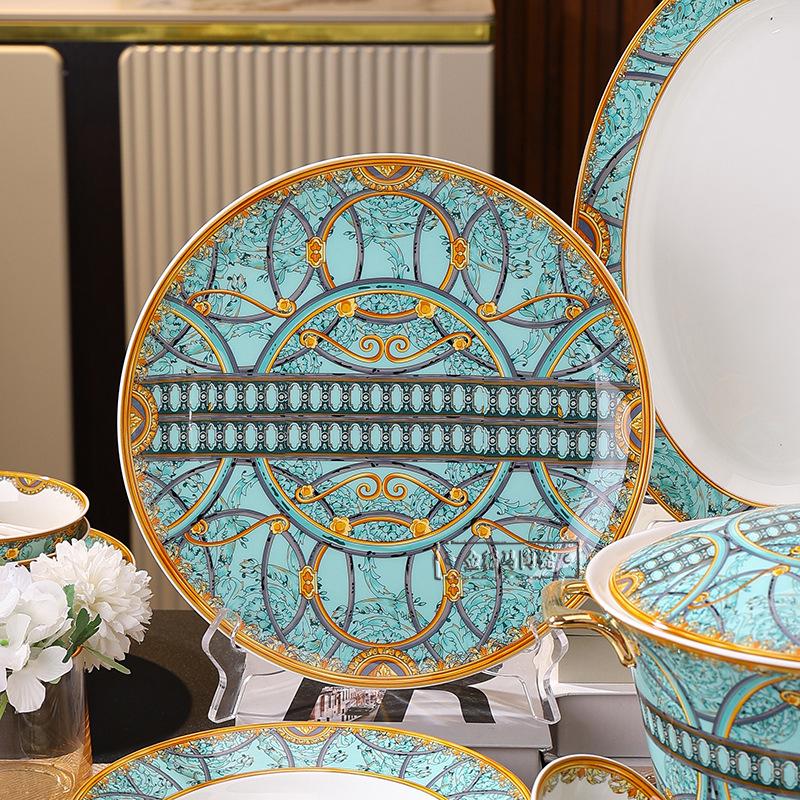 Cuenco de cerámica creativo y popular en Internet, plato para cubiertos, cuenco ligero de lujo con bajo vidriado, colorido plato de estilo occidental, plato para carne, vajilla combinada para el hogar de 43 piezas.