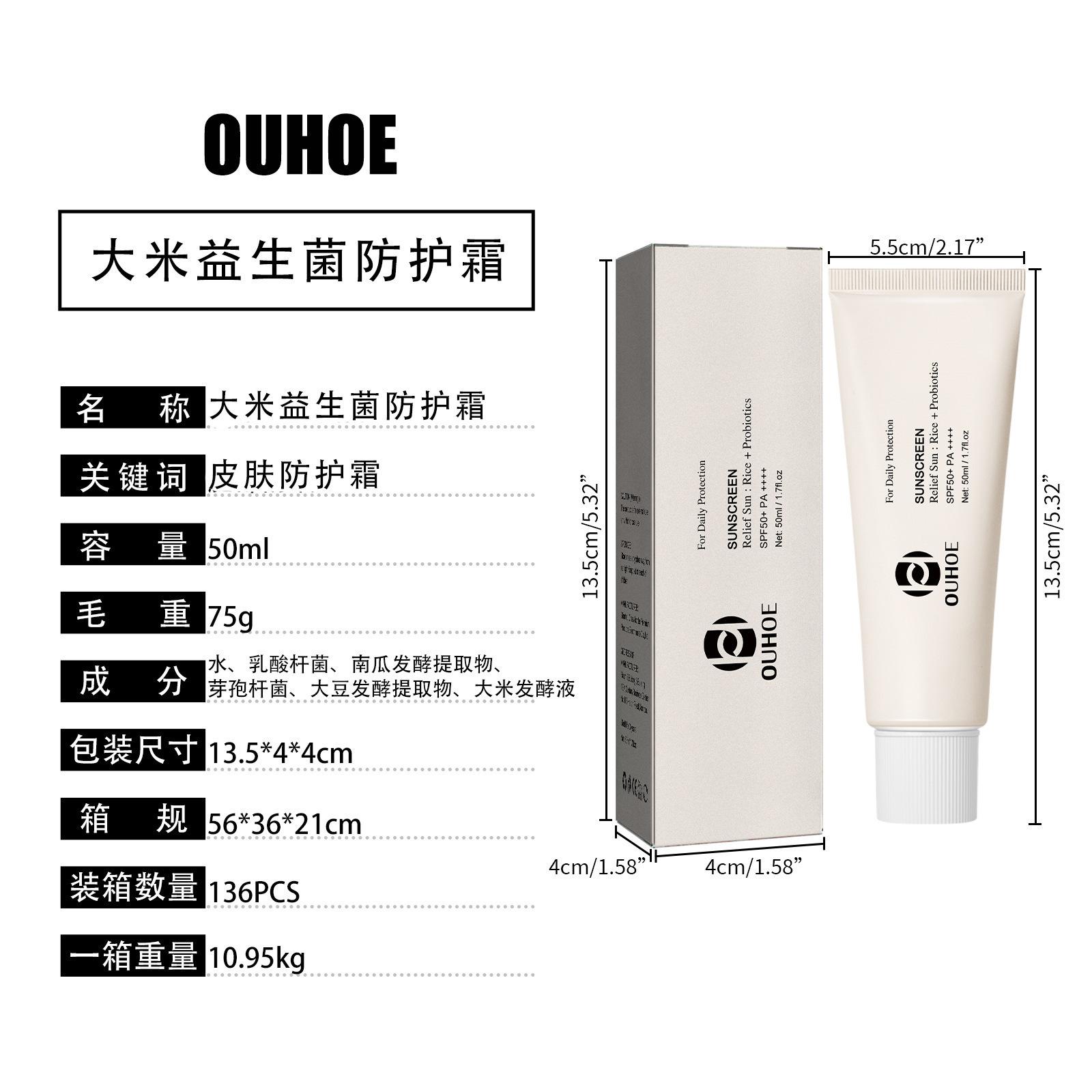 OUHOE crema protectora probiótica de arroz refrescante no grasosa anti-ultravioleta hidratante fijadora de agua crema protectora facial