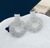 Pendientes circulares de diamantes con aguja de plata s925, exquisitos pendientes Super Flash con incrustaciones de diamantes, pendientes largos de moda, pendientes de celebridades de Internet.