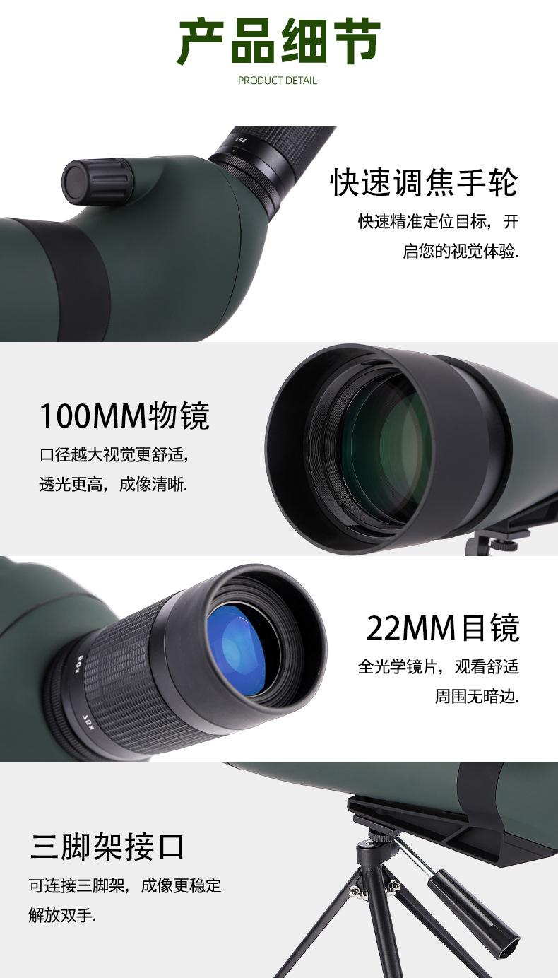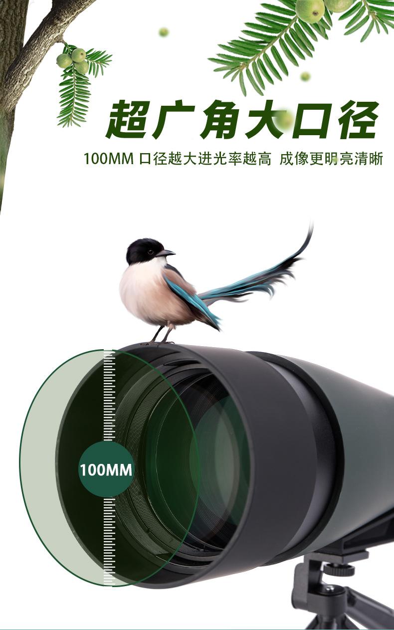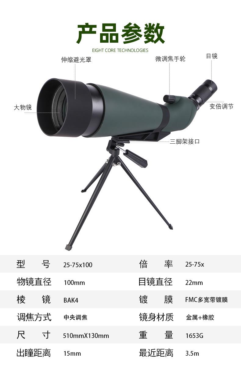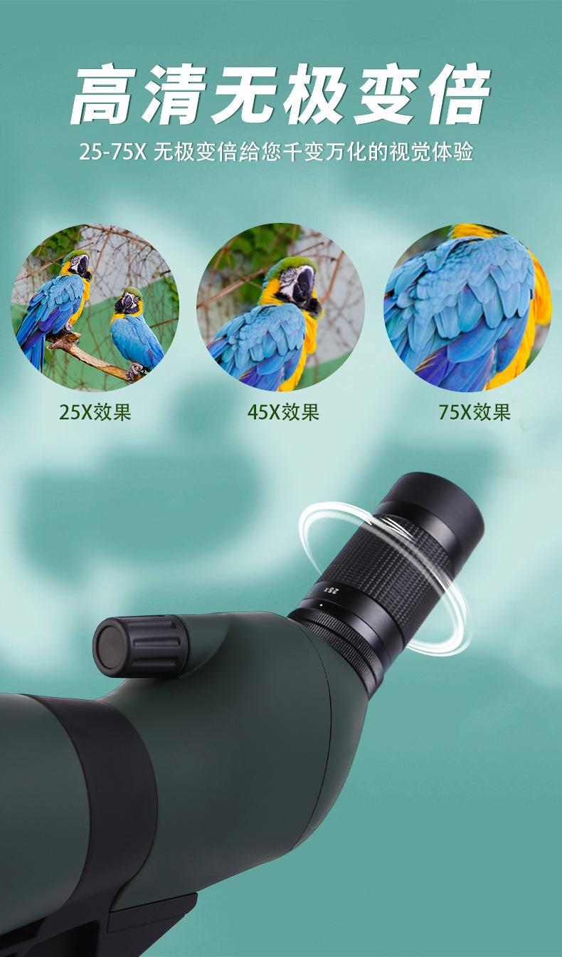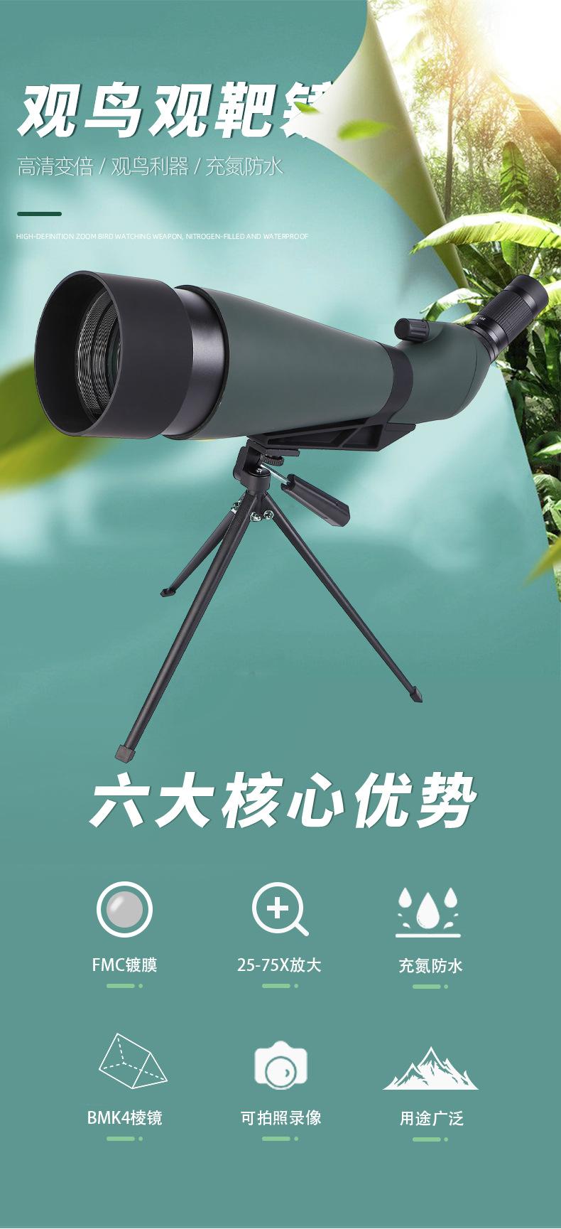 Espejo para observación de aves, suministro directo de fábrica, zoom 25-75X100, telescopio único HD, visión nocturna para exteriores con poca luz