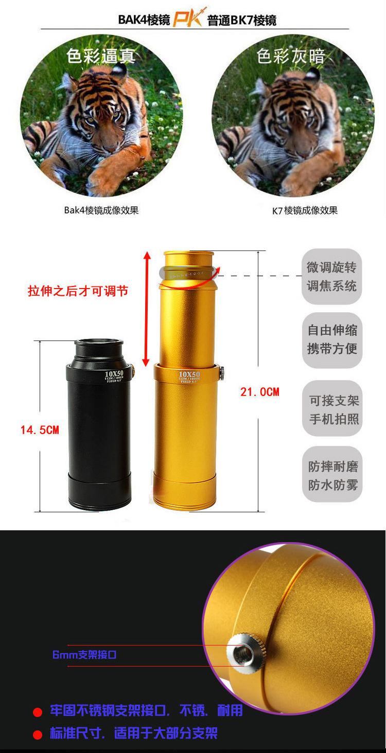 Telescopio monocular 10x50 de alta potencia, HD, visión nocturna, para exteriores, cámara de teléfono móvil, telescopio portátil, directo de fábrica