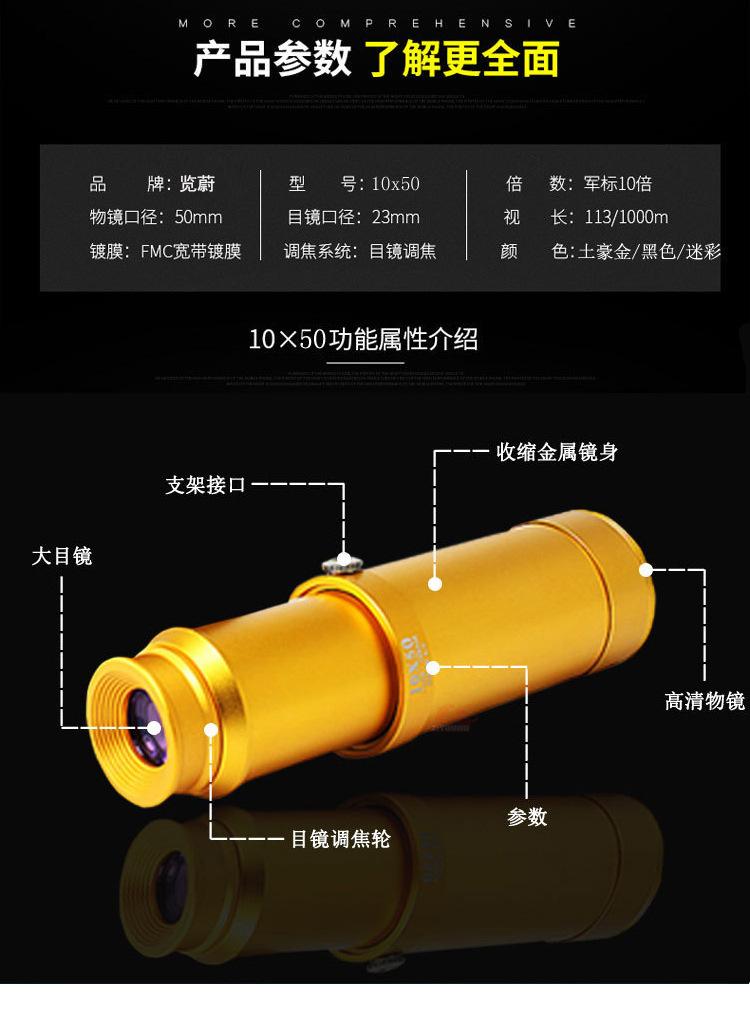 OY10X50 [local tyrants gold] single tube, OY10x50 "metal black" single cylinder