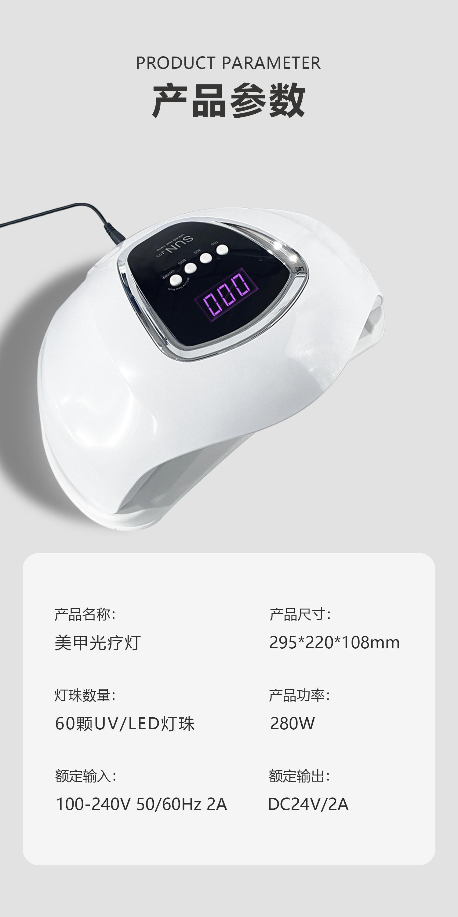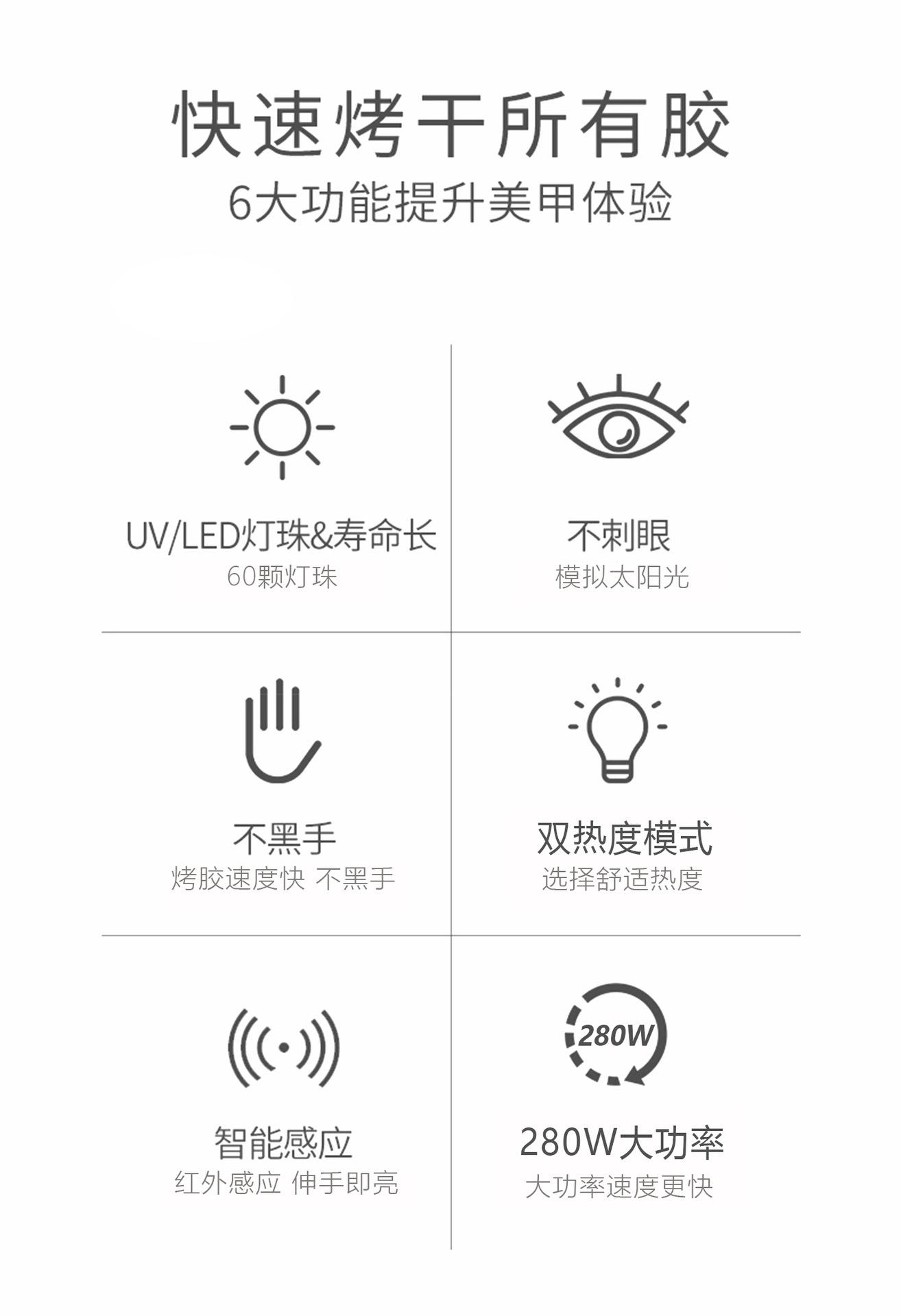 Lámpara de Uñas de Gran Espacio Transfronteriza con Manos 280W Alta Potencia Lámpara de Horneado Uv Led Máquina Inteligente de Fototerapia para Esmalte de Uñas