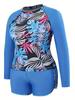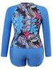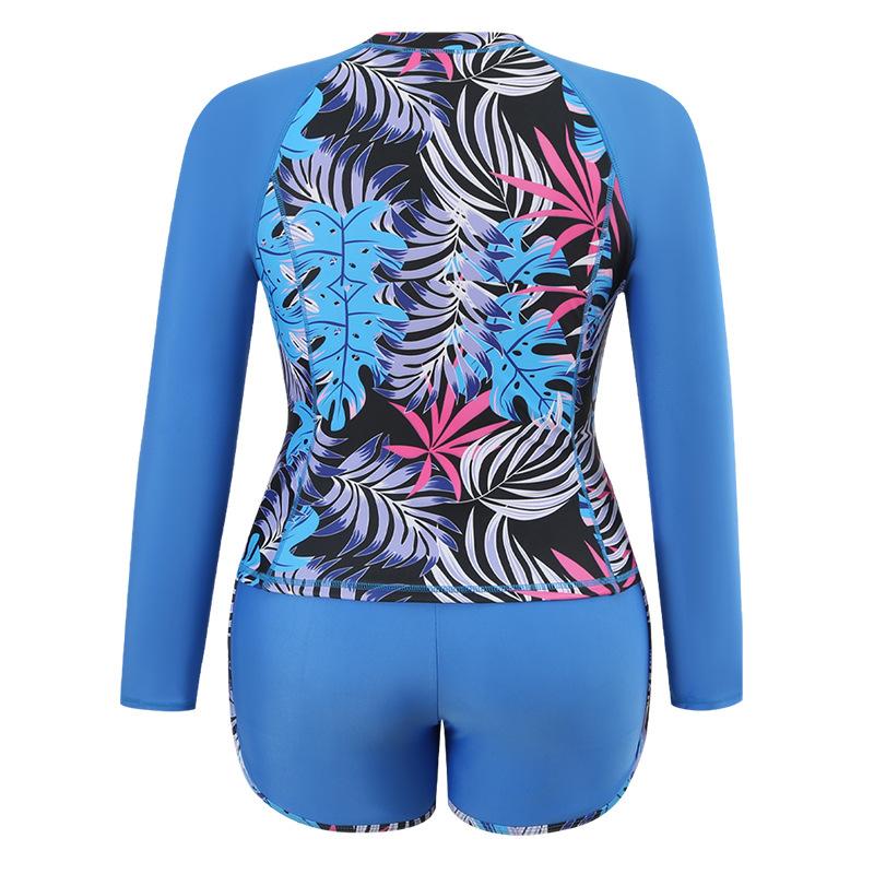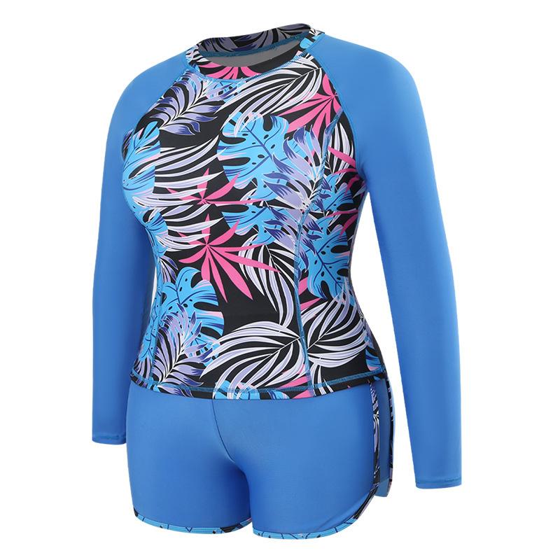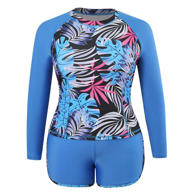 Nuevo traje de buceo y surf europeo y americano de Amazon, manga larga, protección solar, estampado digital, ángulo plano dividido, traje de baño de talla grande