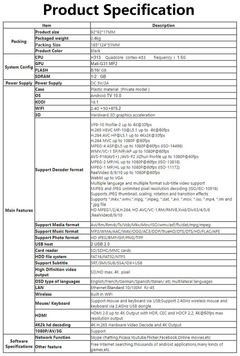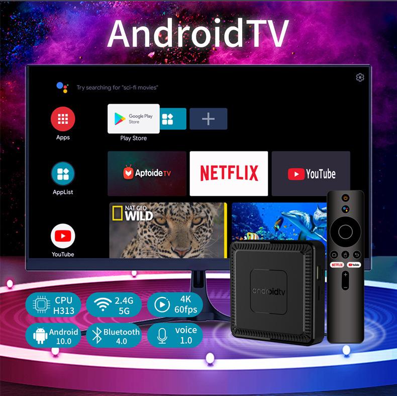 Nuevo Producto Transfronterizo Android 10.0 Doble Banda Inteligente Reproductor de Voz Atv Red Decodificador H313 Caja Tvbox