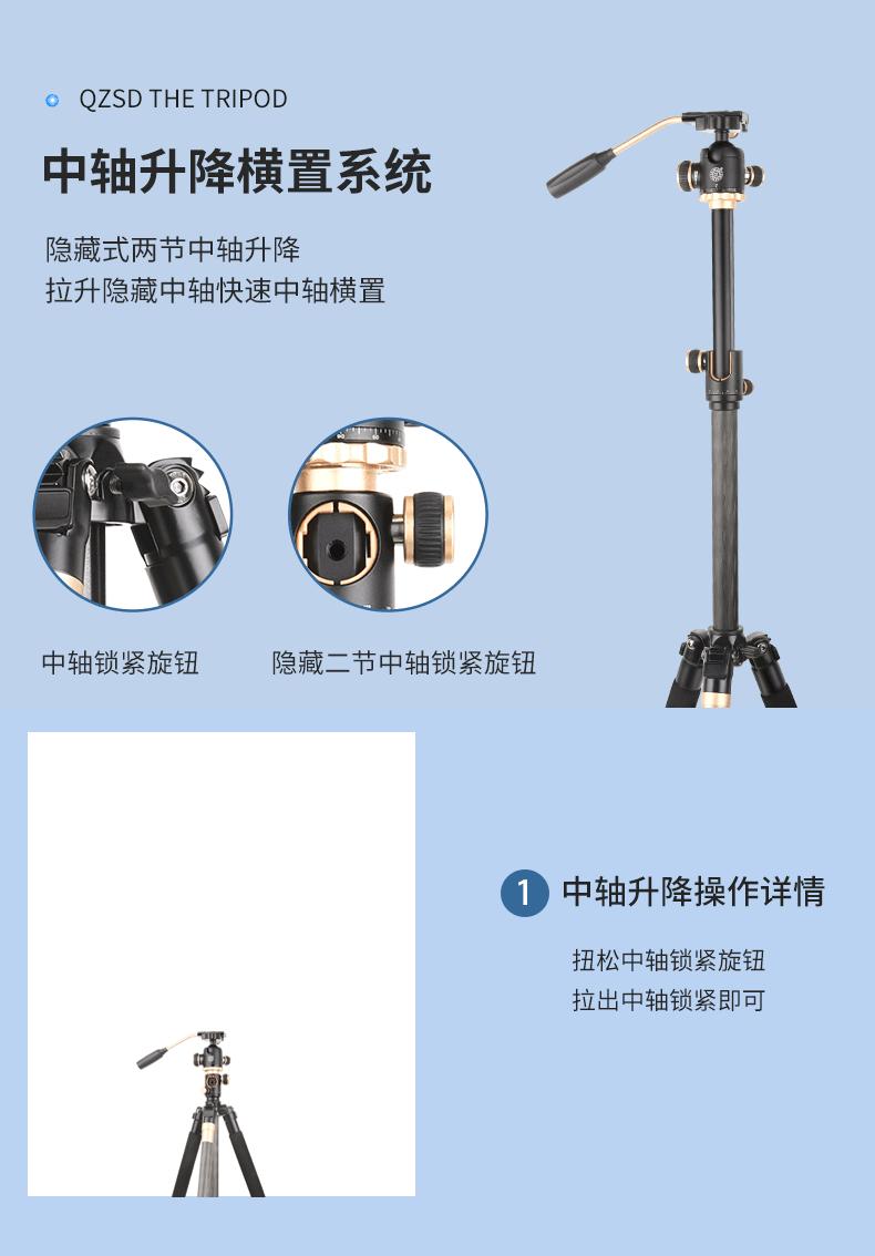 Trípode ligero Era Q888C de eje central horizontal para cámara réflex digital, mango para disparo cenital, rótula de bola, soporte para fotografía