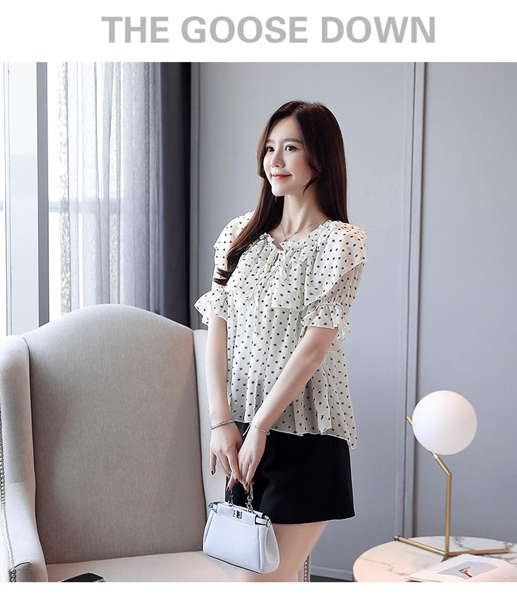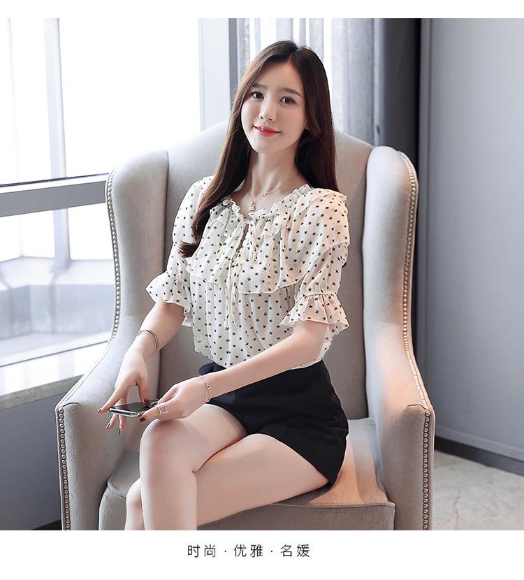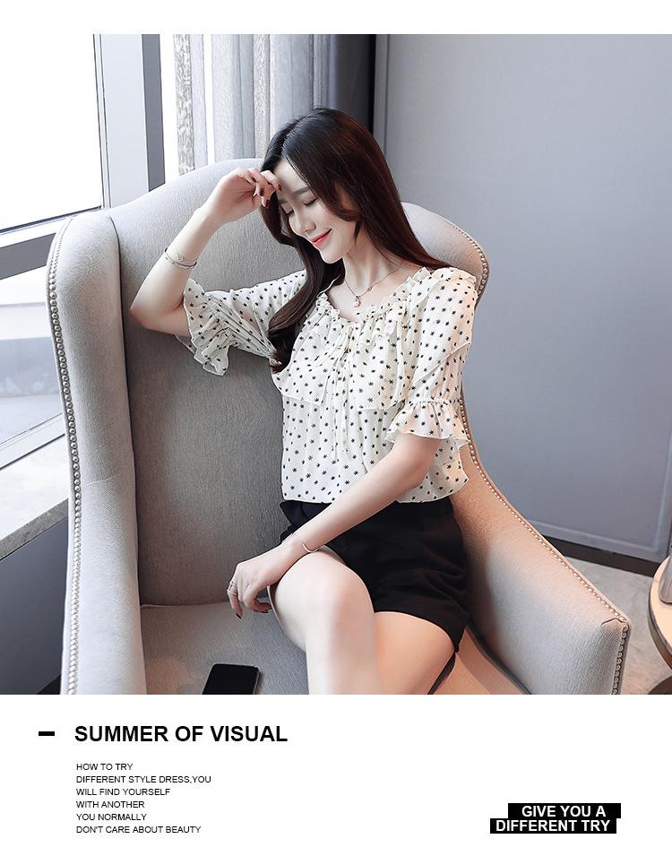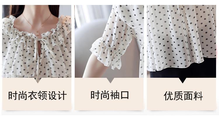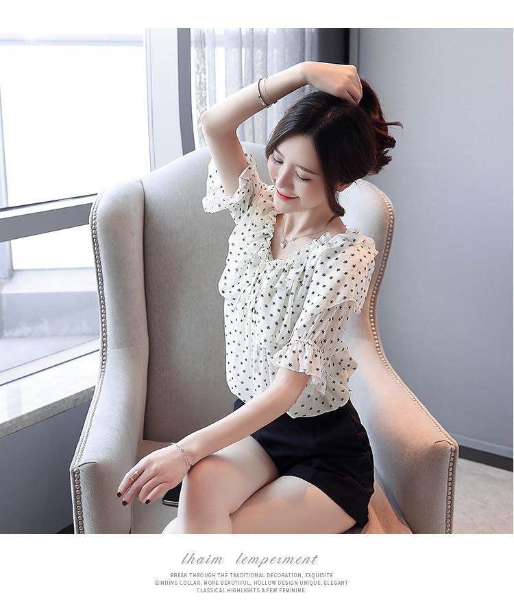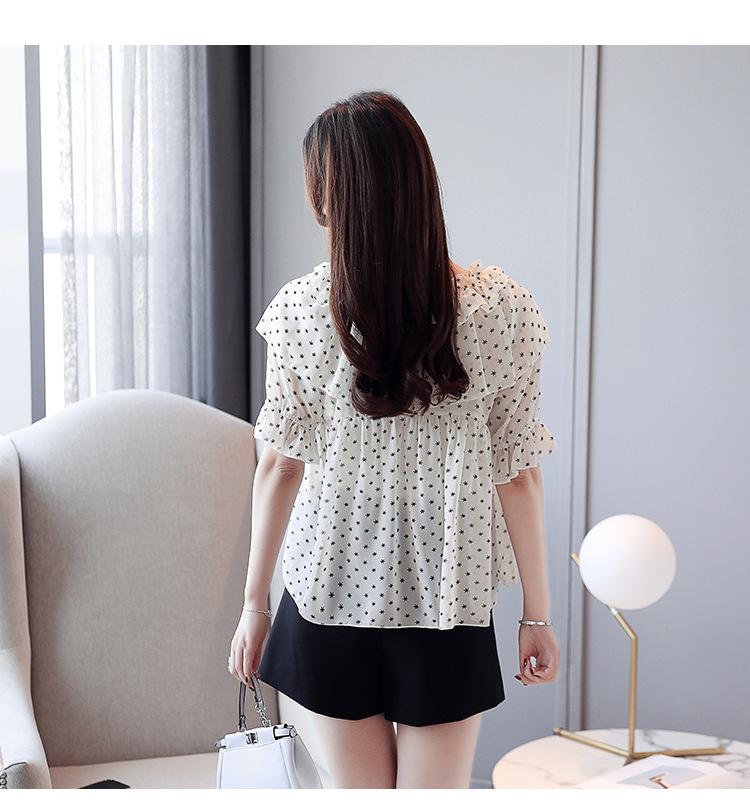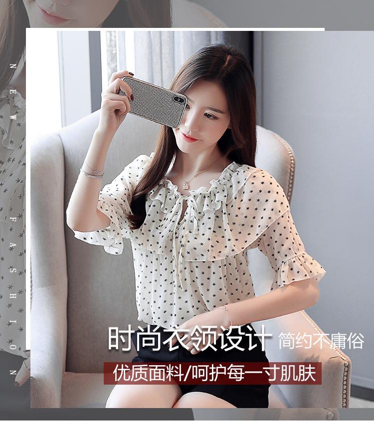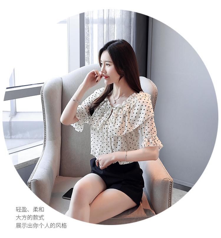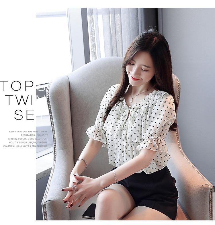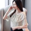 En stock Verano nuevo estilo hada top que cubre el vientre camisa de gasa adelgazante floral estilo occidental camisa pequeña de manga corta para mujer Super hada