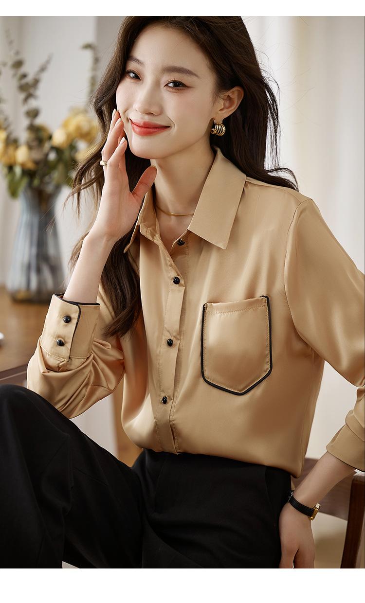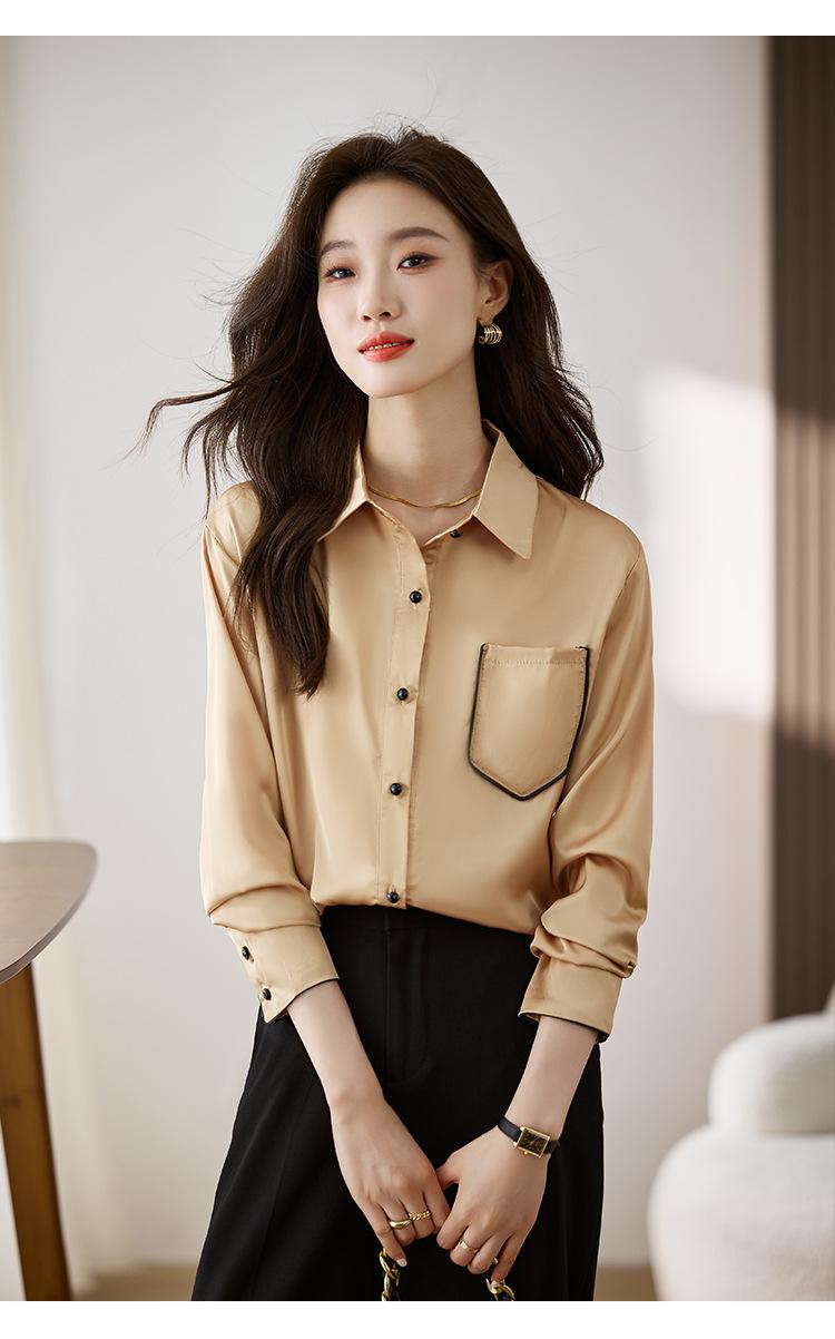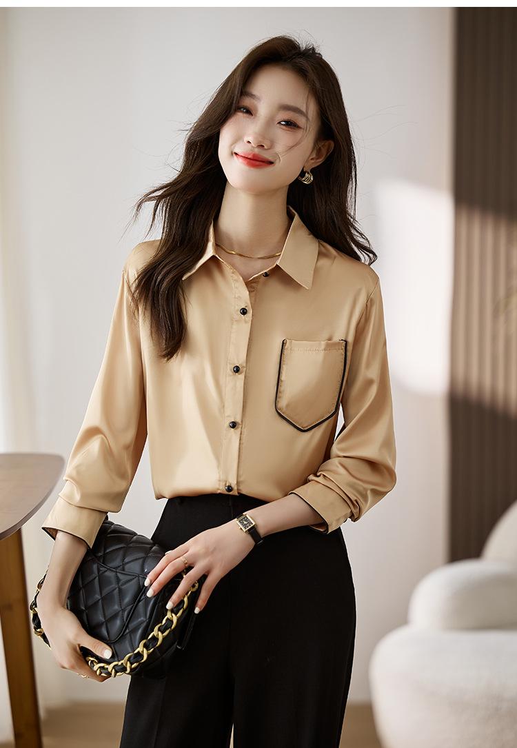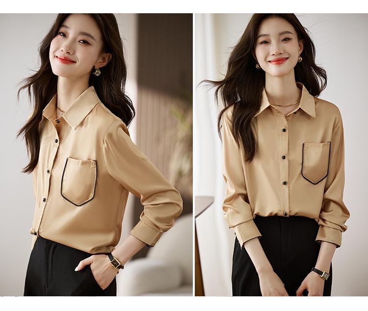 2025 Estilo Occidental Casual Primavera Nuevo Camisa de Chifón de Seda Imitada para Mujer Top Cárdigan Camisa Camiseta Básica Camisa