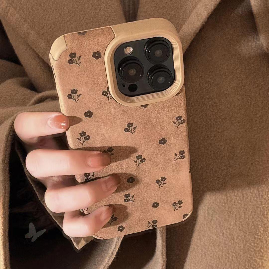 Funda con diseño de flores pequeñas negras para iPhone 16 Pro Max y Apple 15 Pro, 14 y 13, con estampado de cuero, 12/11