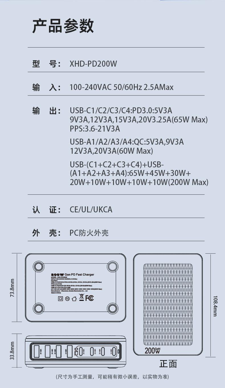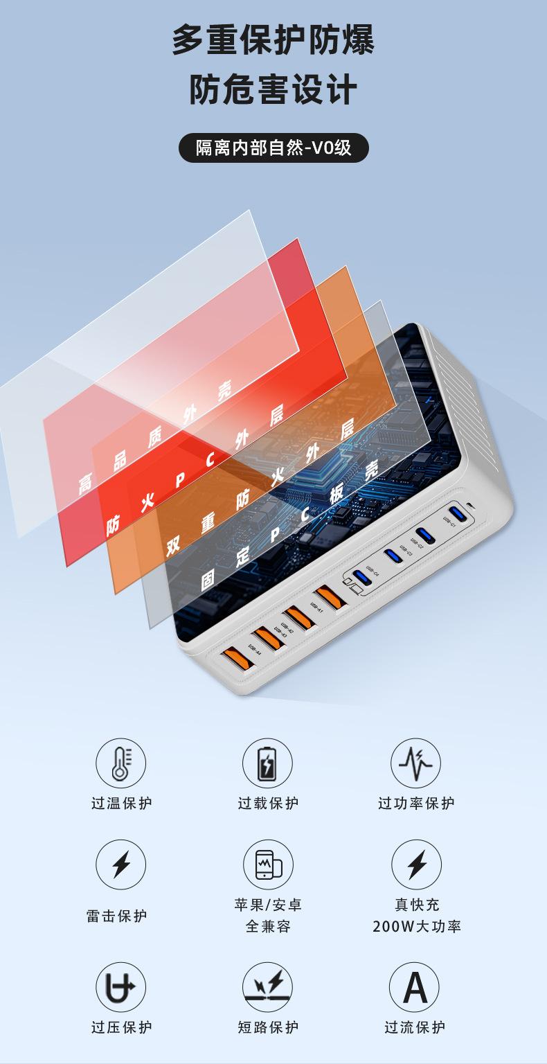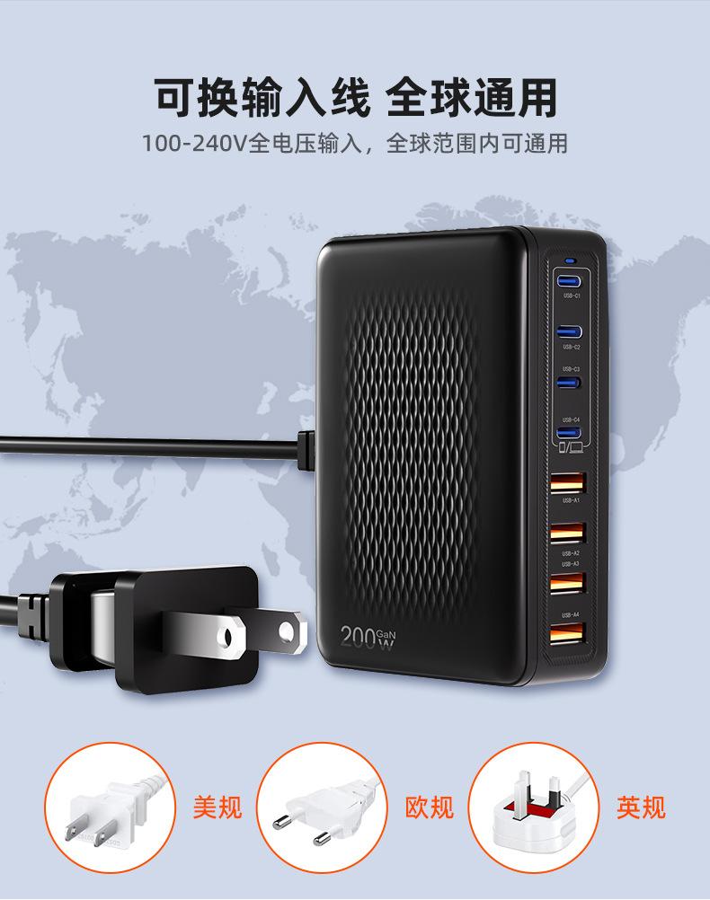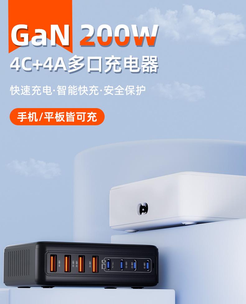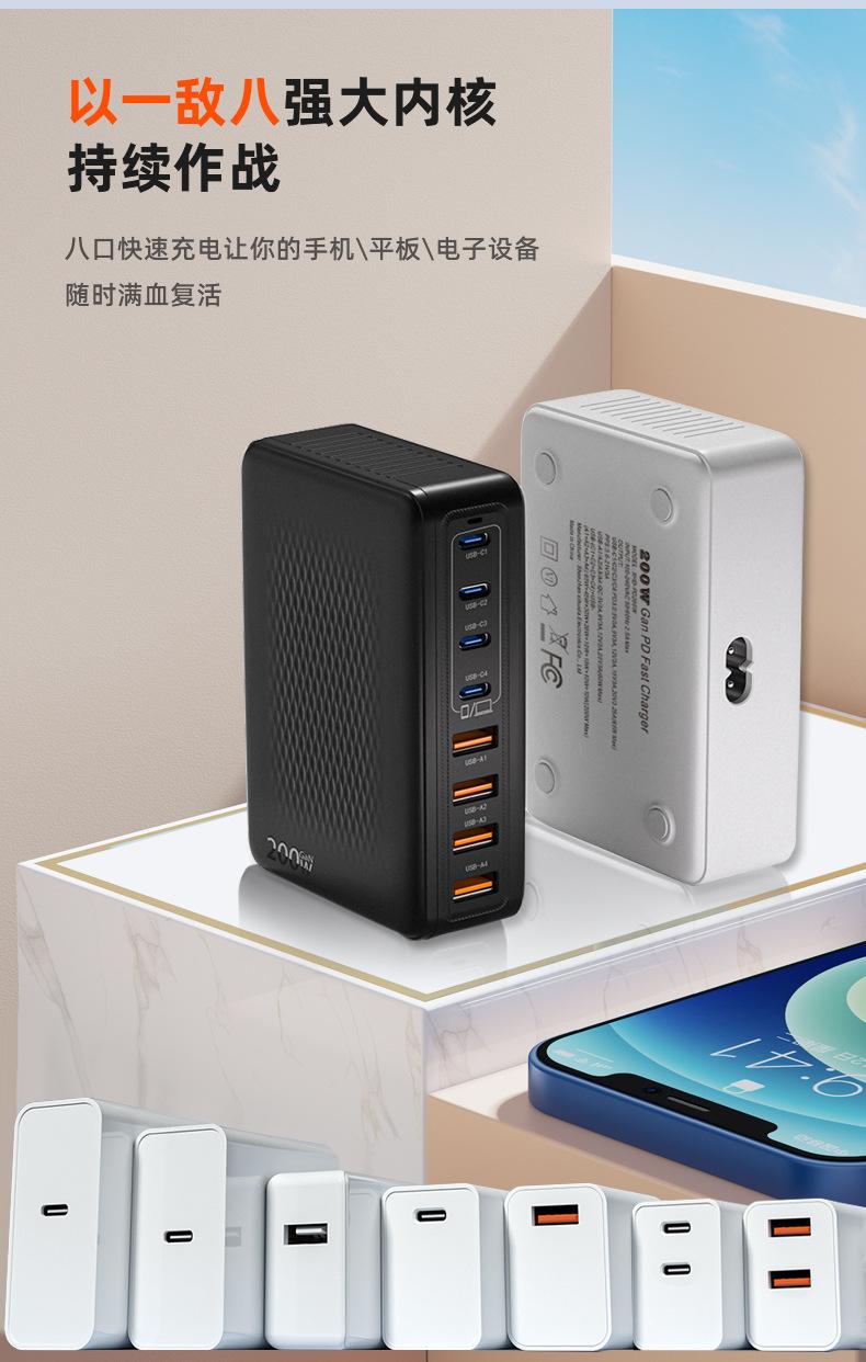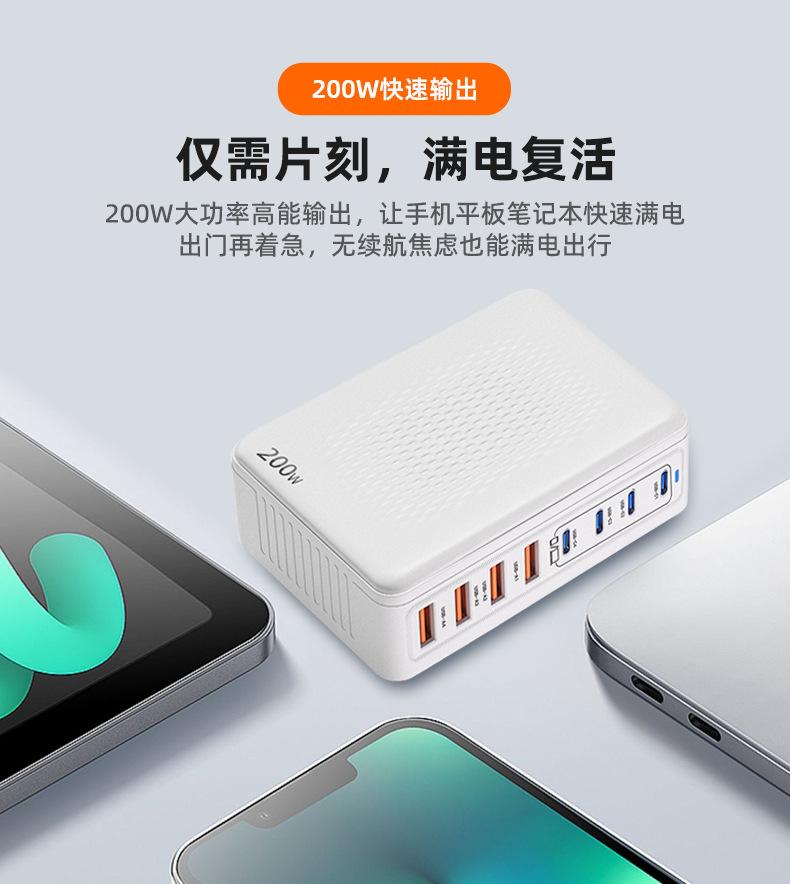 Cargador transfronterizo nuevo de 200W de nitruro de galio para cargador Apple 15 cargador Samsung cargador de teléfono móvil