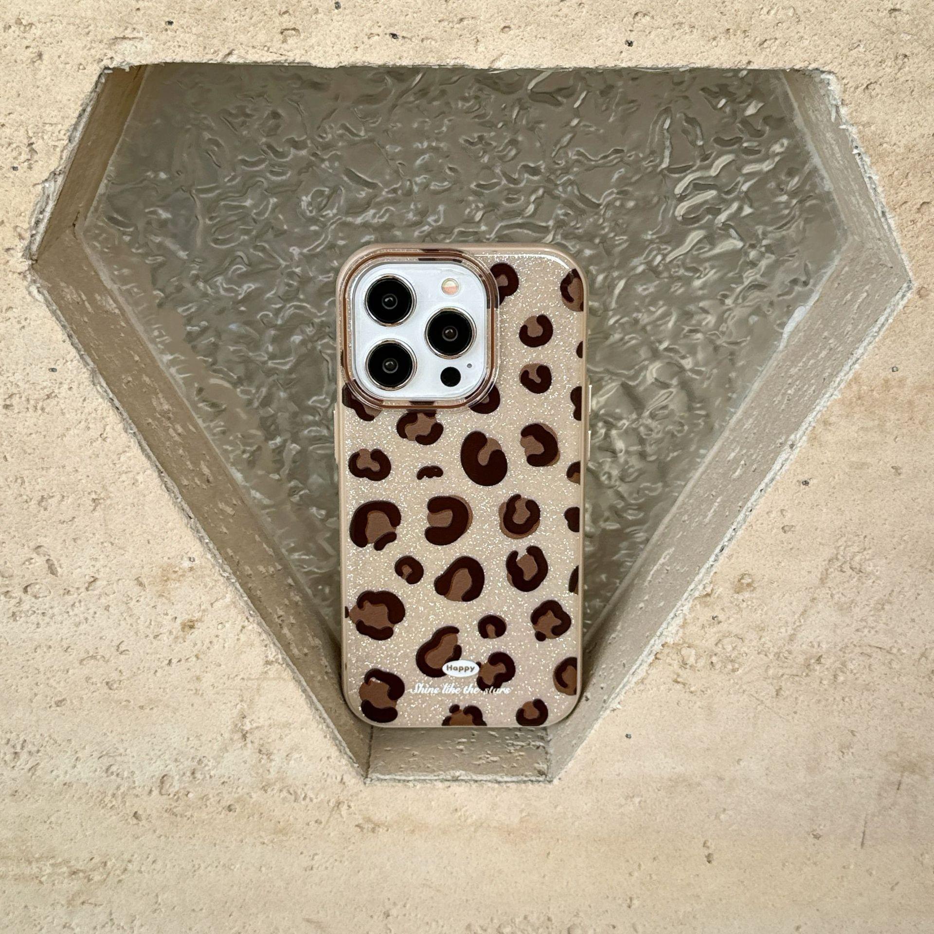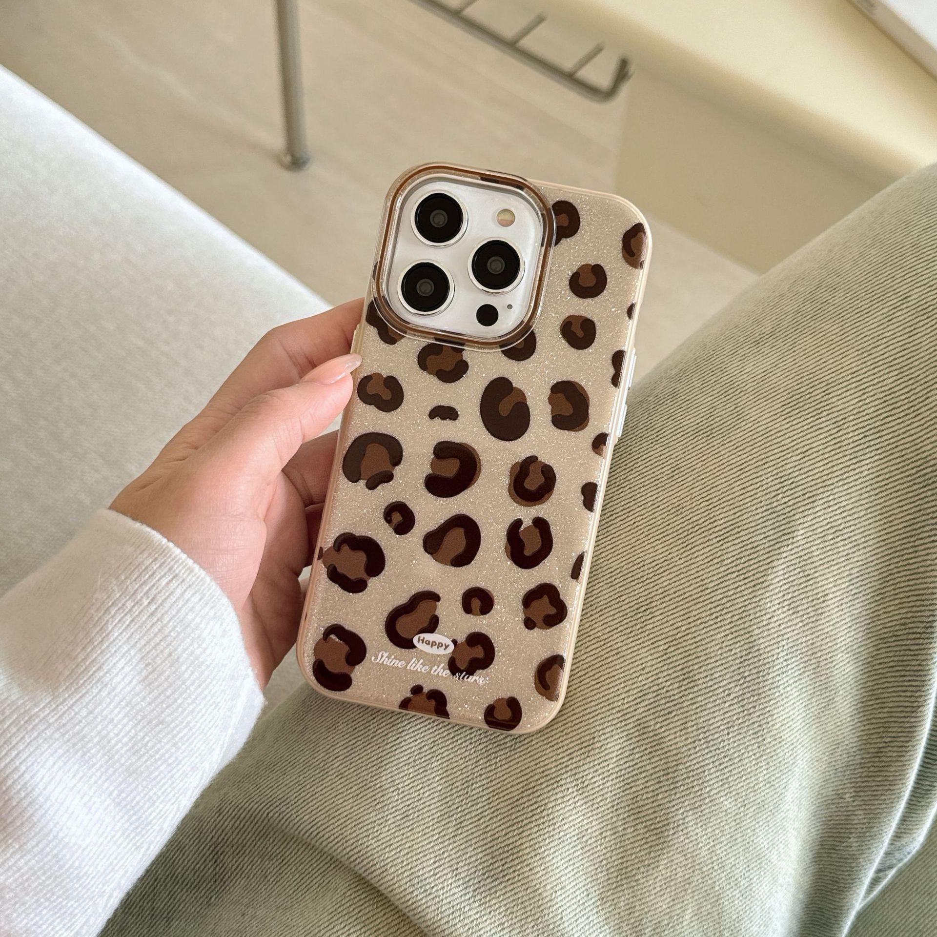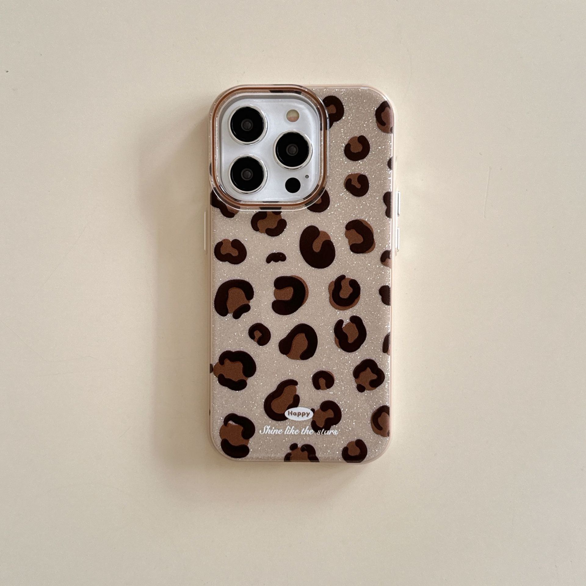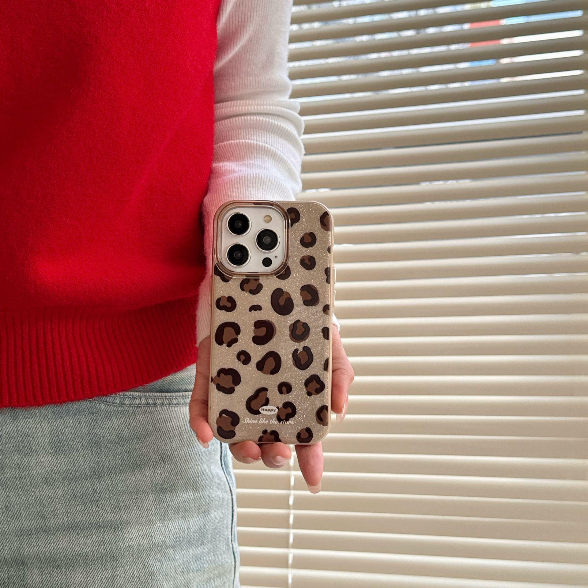 Funda para teléfono móvil con estampado de leopardo y purpurina personalizada coreana para Apple 16, ProMax, iPhone 15, lazo 14, portátil 13