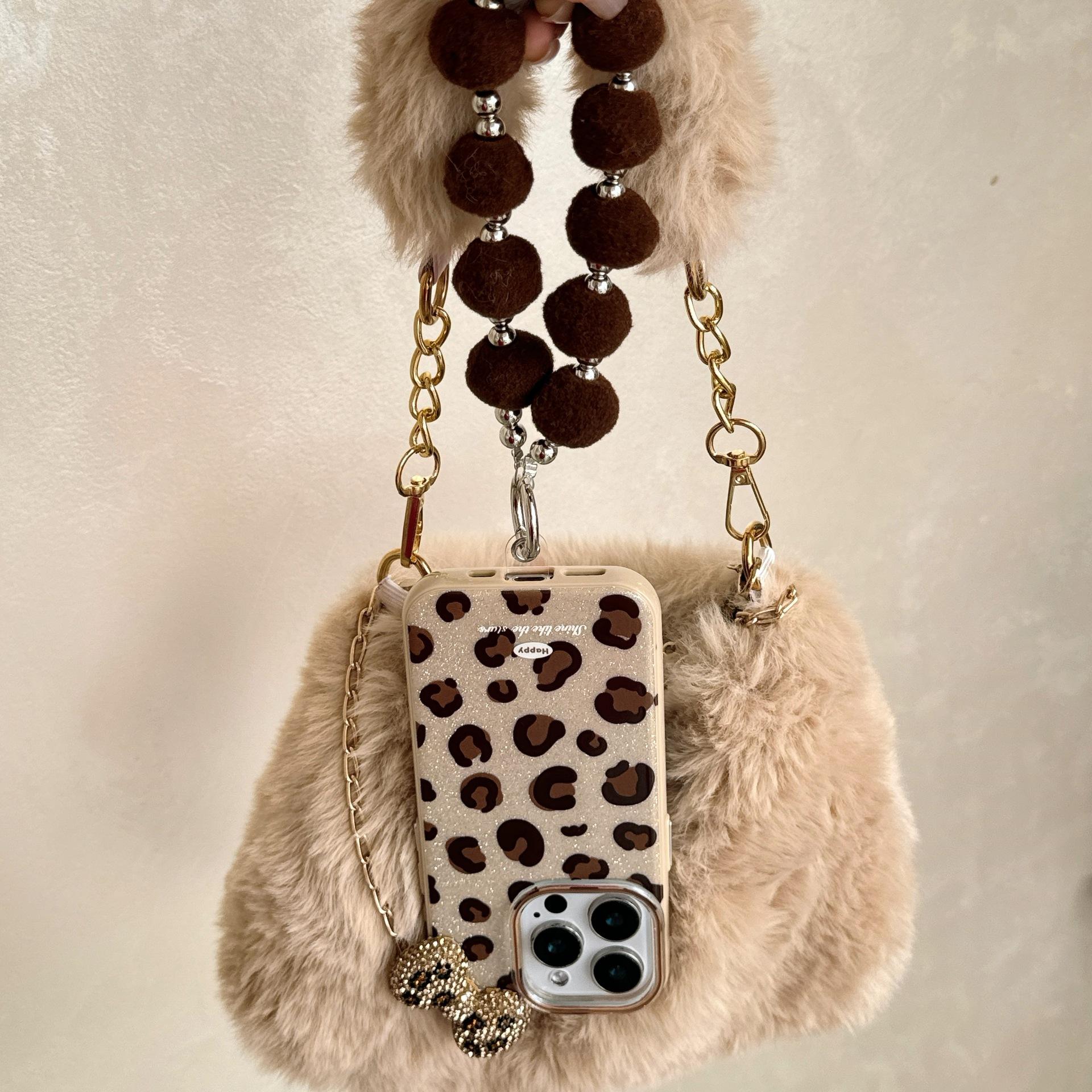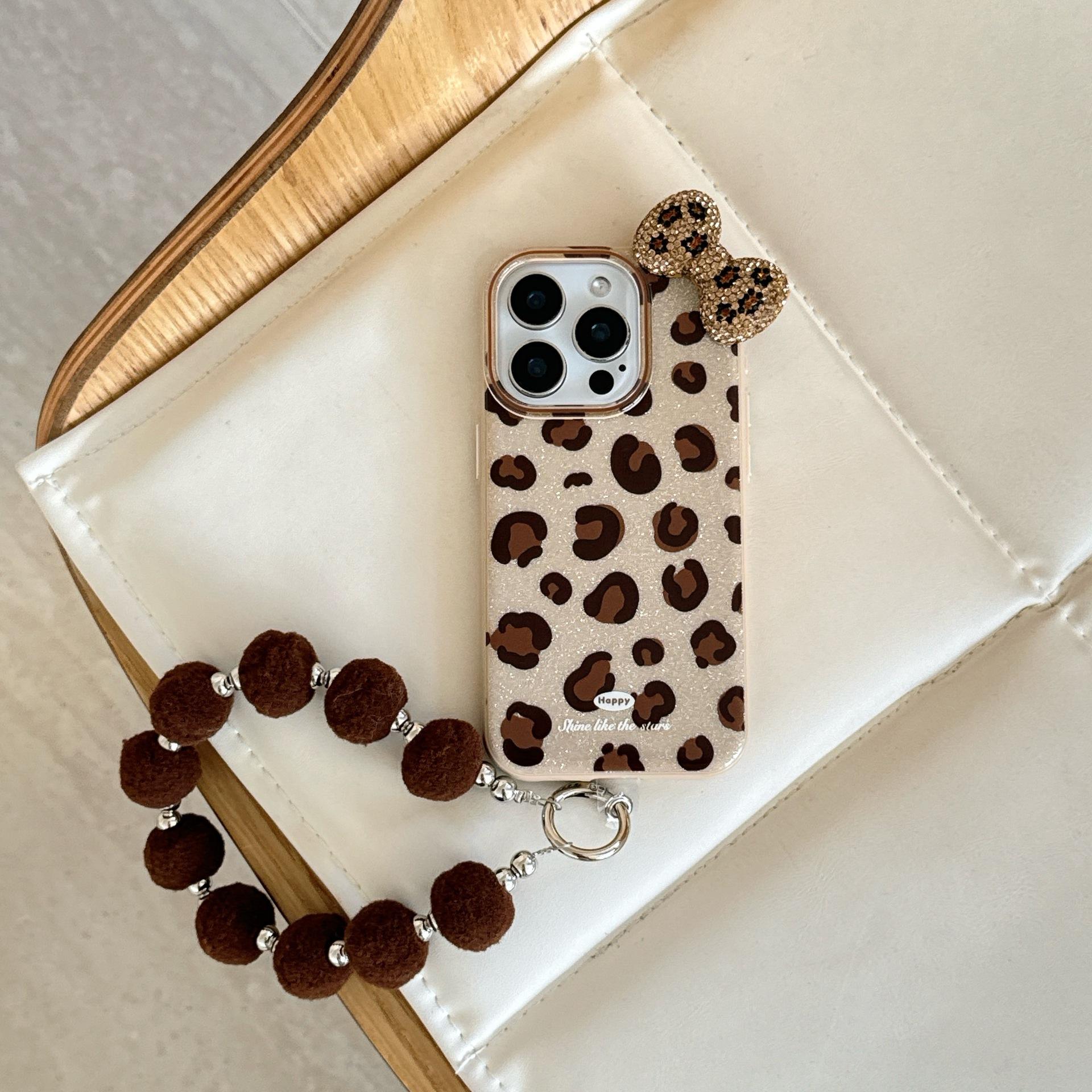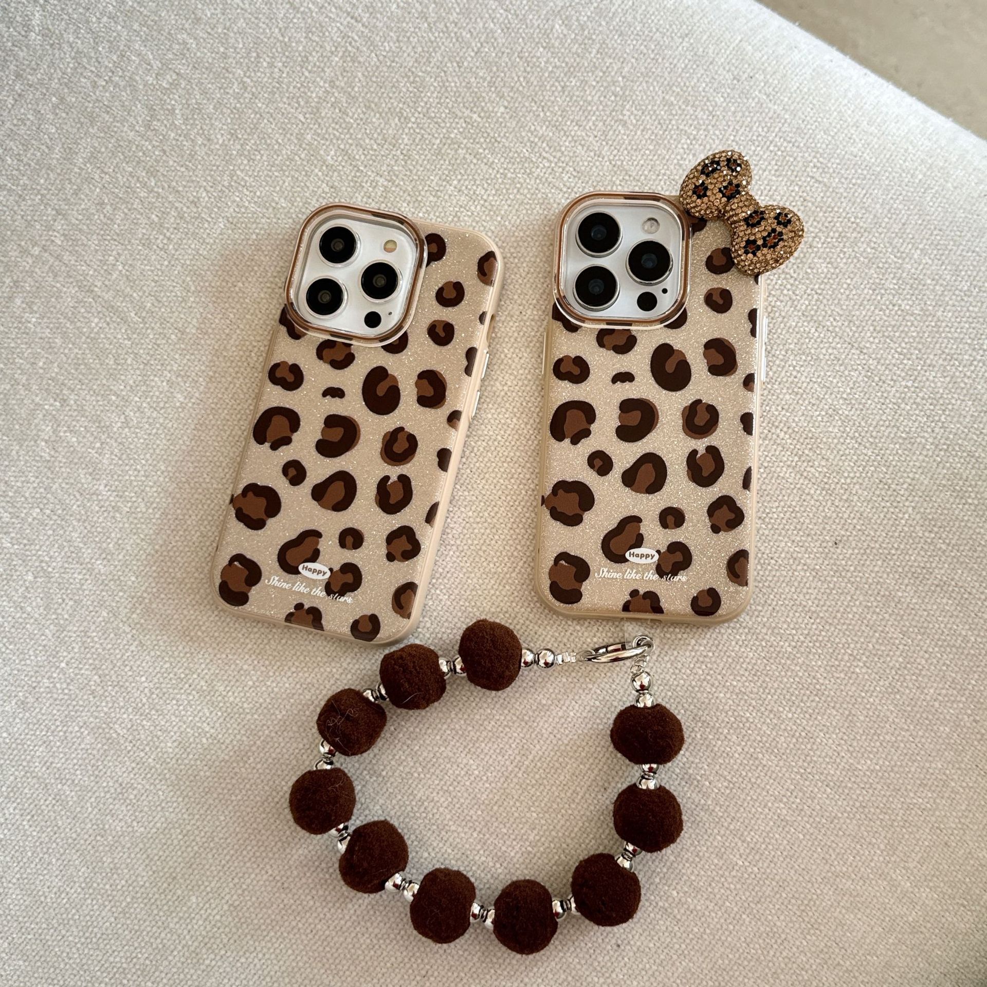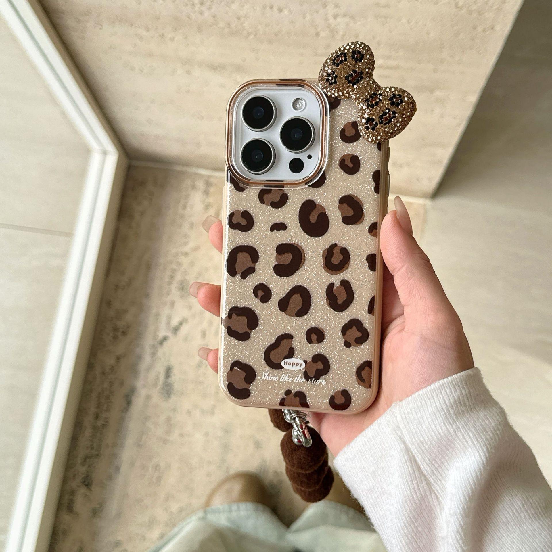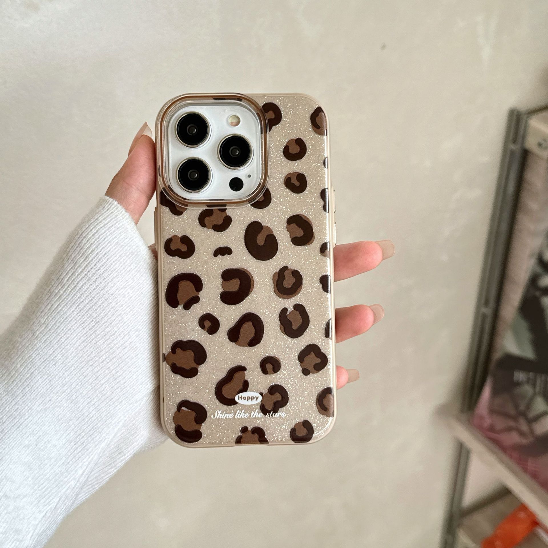 Funda para teléfono móvil con estampado de leopardo y purpurina personalizada coreana para Apple 16, ProMax, iPhone 15, lazo 14, portátil 13