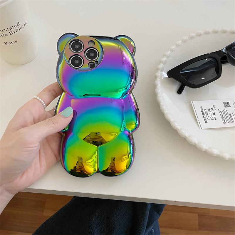 Lindo oso galvanizado para Apple 14 dibujos animados iPhone15/15plus/12pro funda protectora 13 resistente a caídas