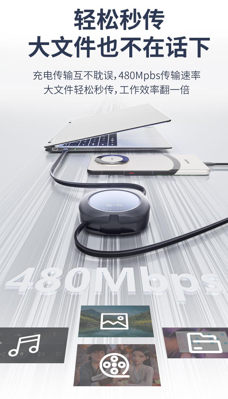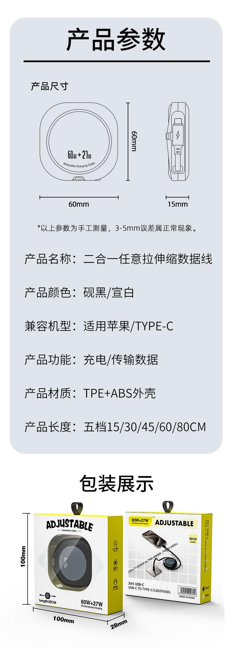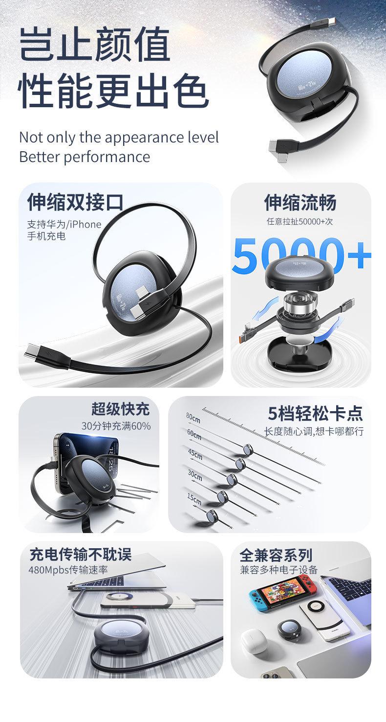 60w telescopic two-in-one fast charging cable [inkstone black], 100w original circle one for three [haoyue whi...