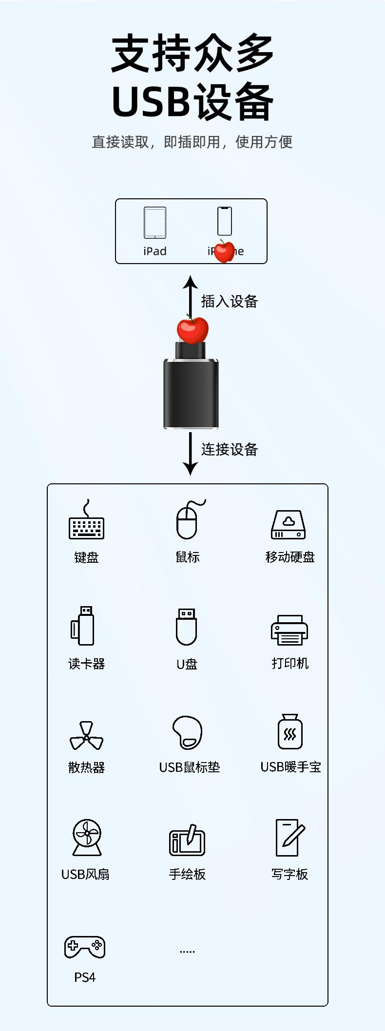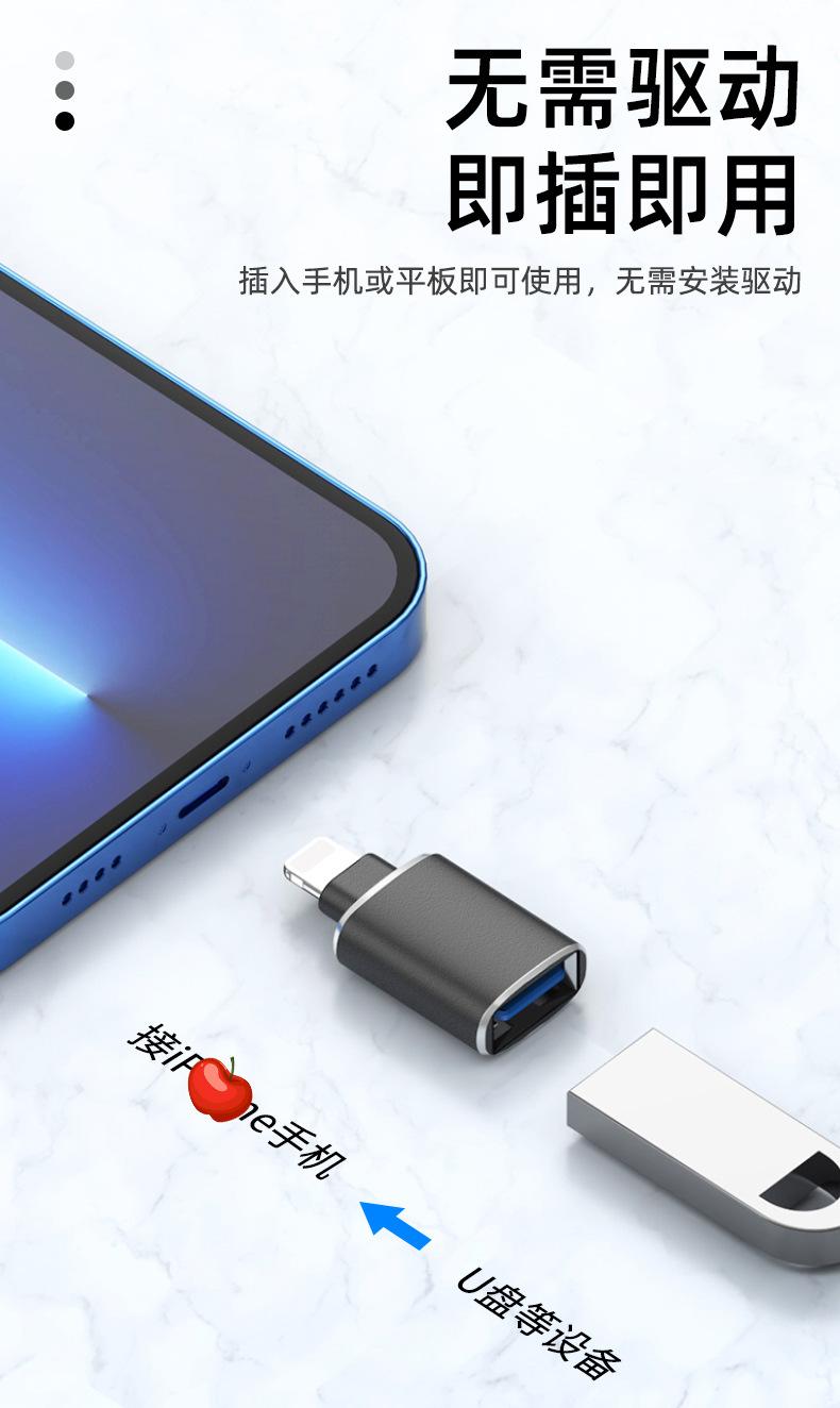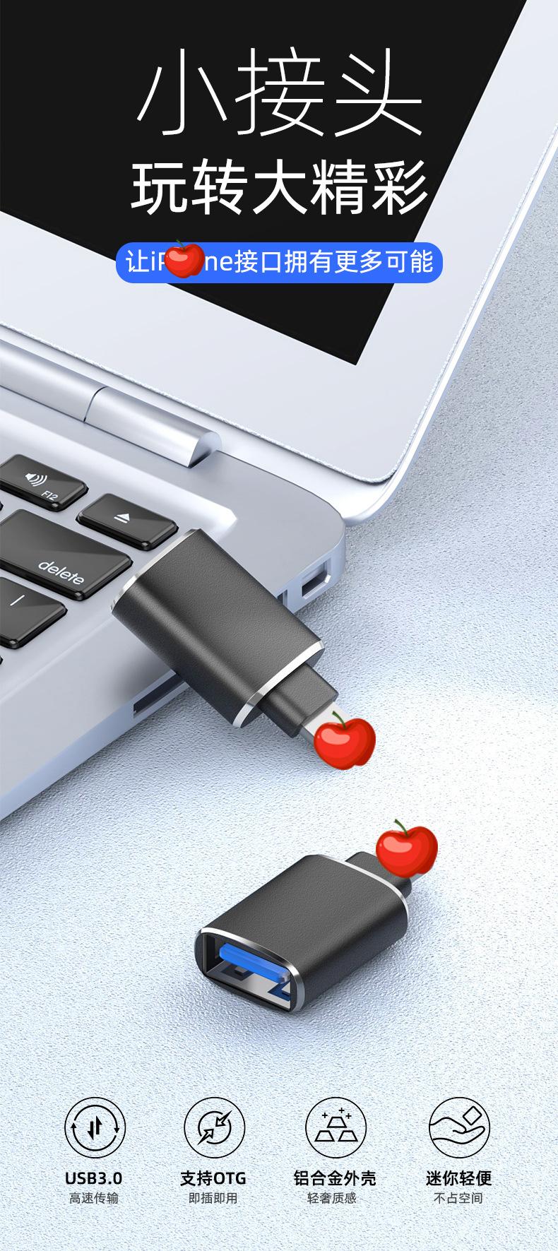El adaptador de teléfono móvil OTG es adecuado para el convertidor de Apple a USB al adaptador de transferencia de datos de disco USB 3.0