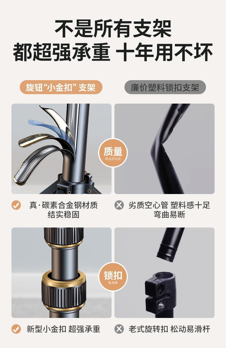 55cm [upgrade alloy bracket]]. Stand-alone storage bag.