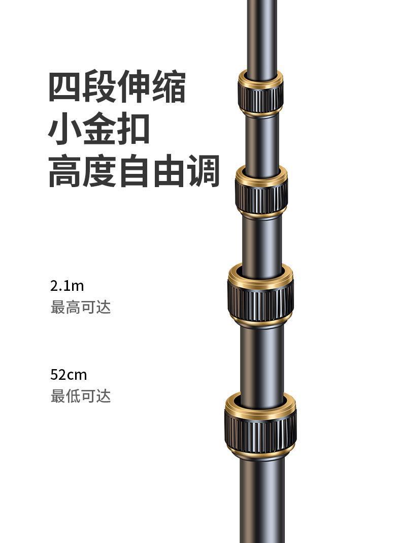55cm [upgrade alloy bracket]]. Stand-alone storage bag., 1.7 m Tripod Swivel Clamp, 2.1 m Tripod Swivel Clip