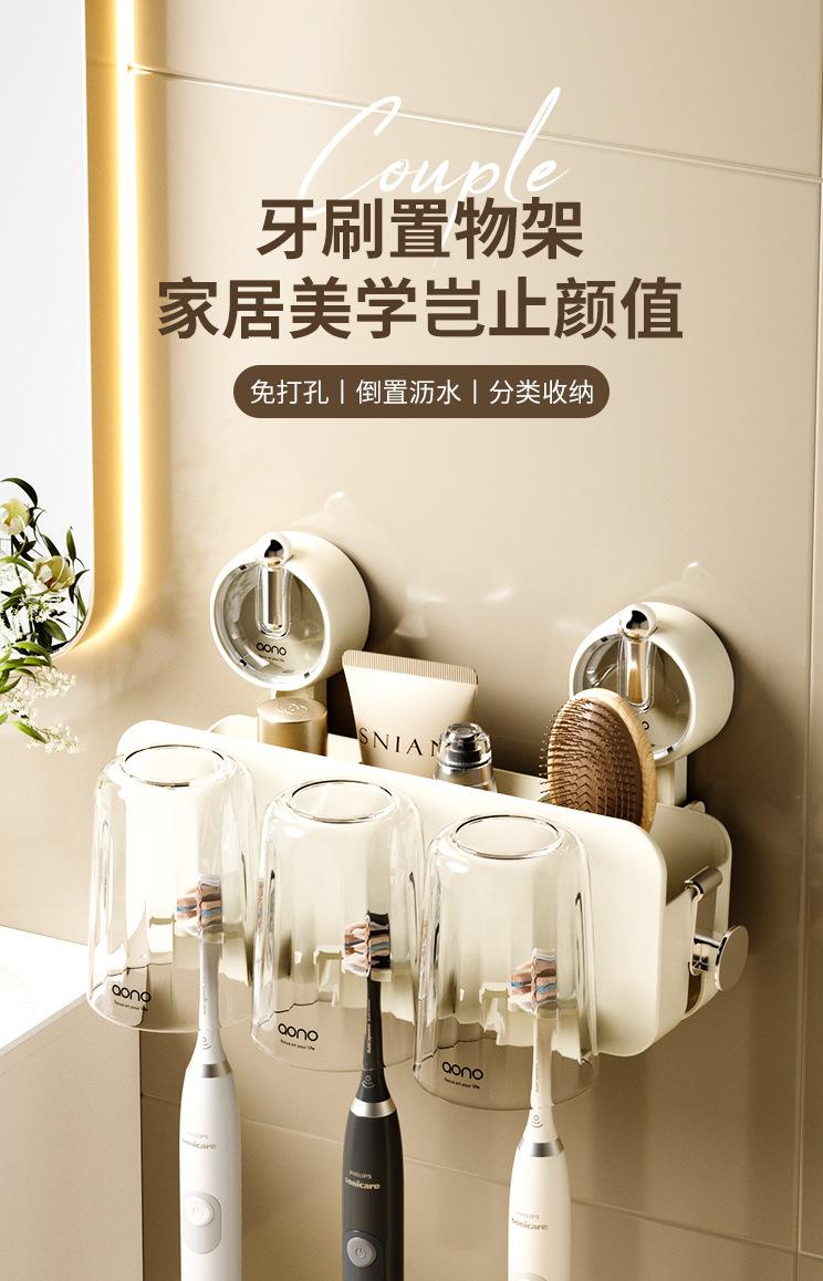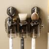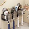 Portavasos familiar para cepillos de dientes, estante de almacenamiento sin perforaciones, vaso para enjuague bucal, vaso para agua, montado en la pared del baño, soporte eléctrico para pasta de dientes y cepillos de dientes