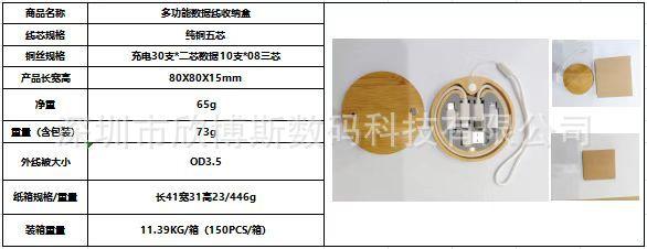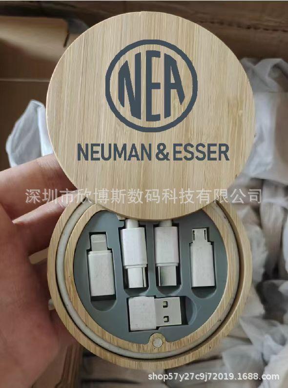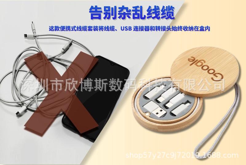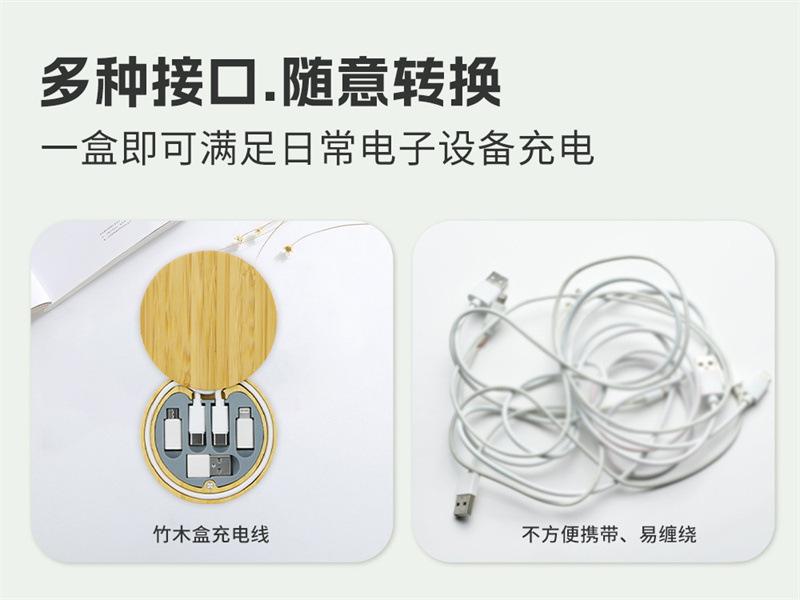 Tarjeta Urbana de Supervivencia Redonda de Bambú Ecológico Spot Transfronterizo Cable de Datos 60W Carga Rápida Caja de Almacenamiento Regalo Cable de Carga Rápida