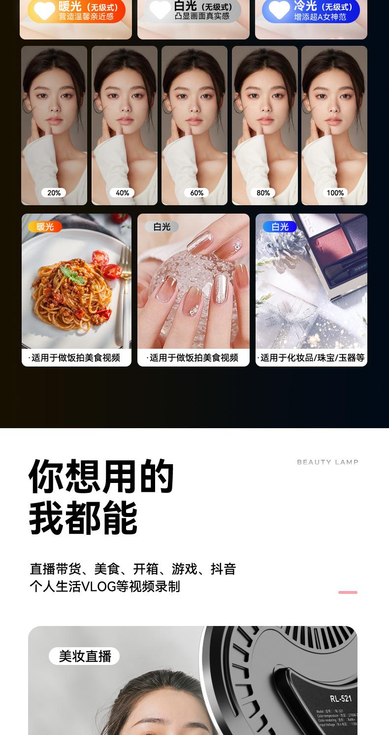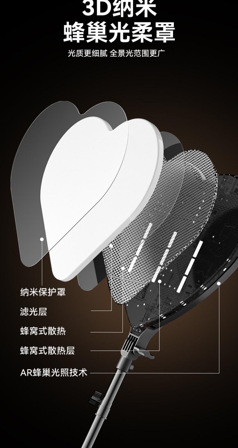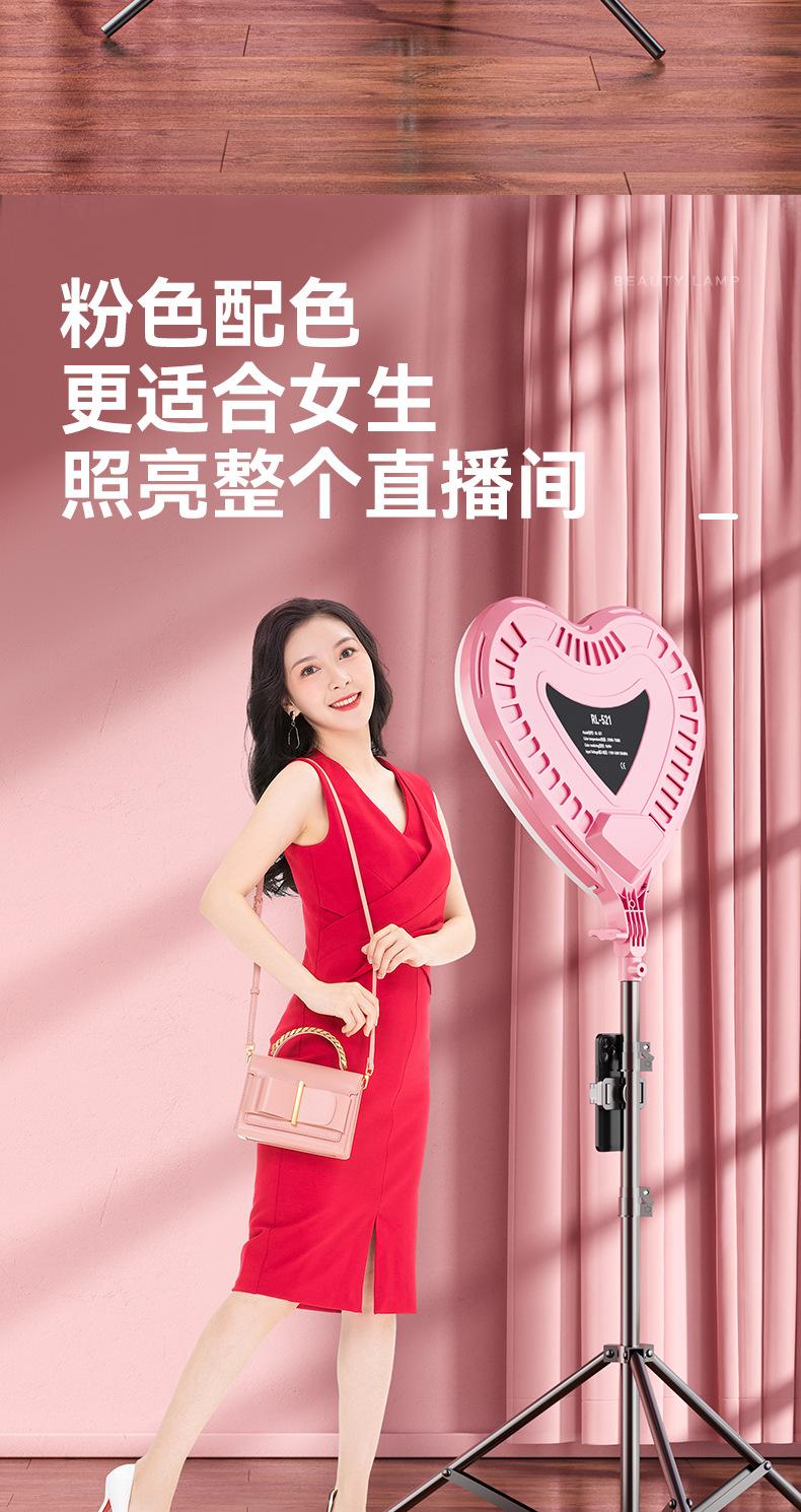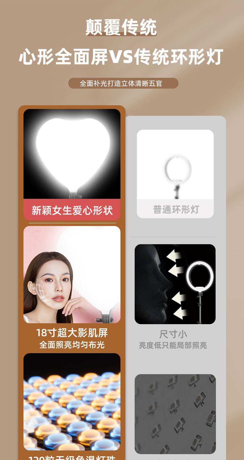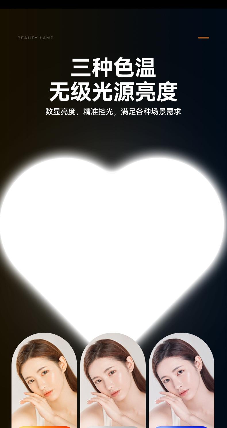 Venta al por mayor de fábrica portátil de pantalla completa luz de amor tres colores cálido teléfono móvil fotografía en vivo luz especial en forma de corazón