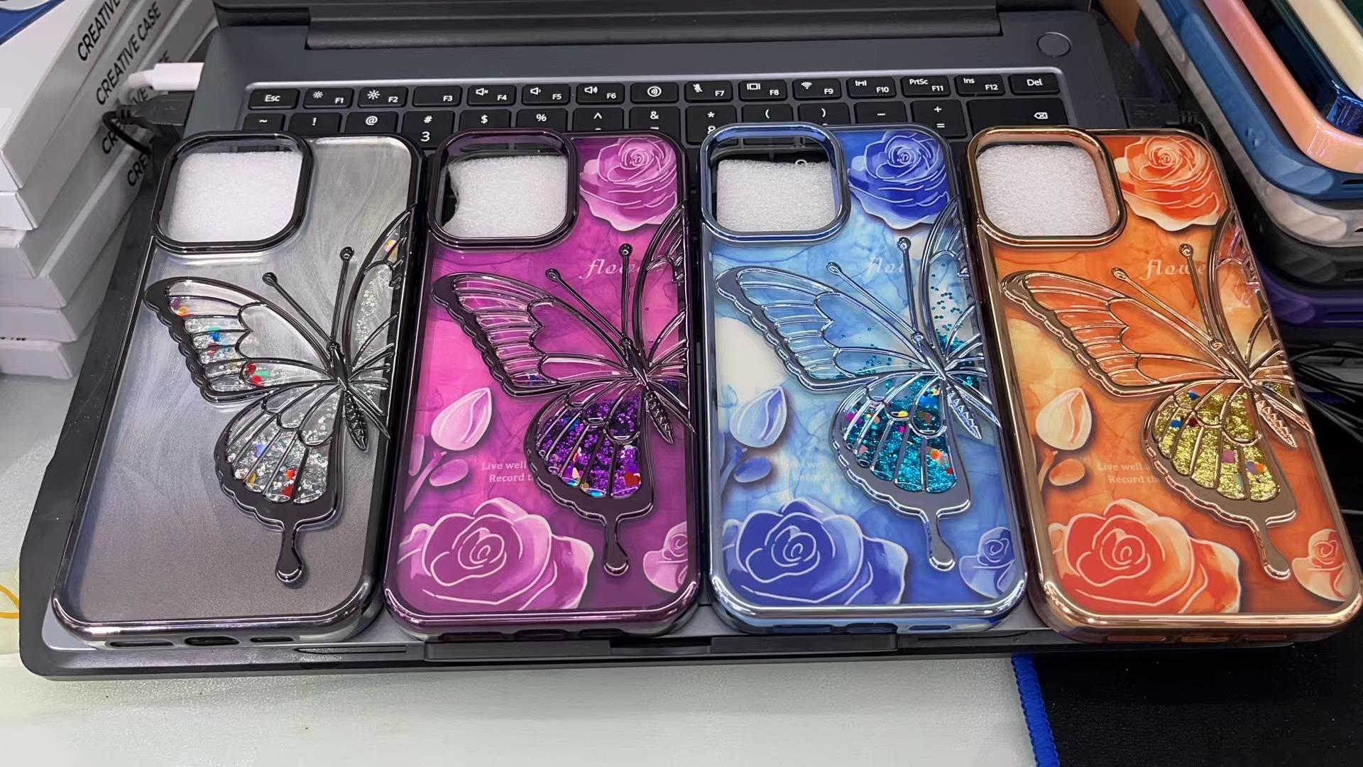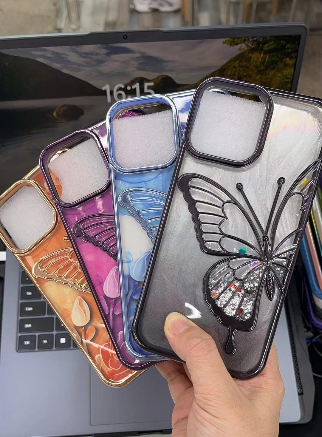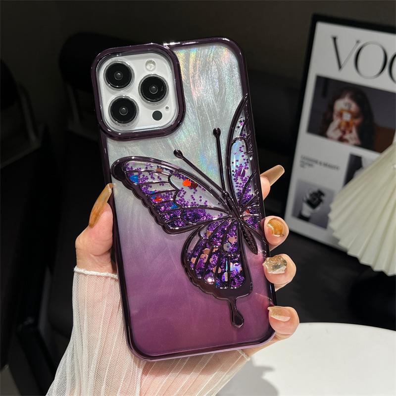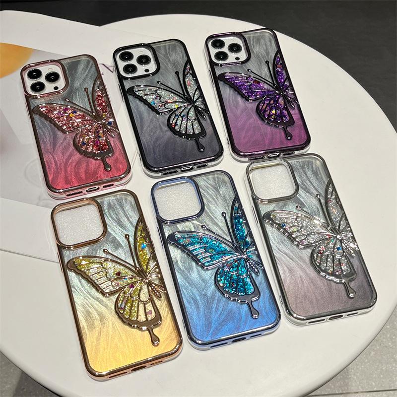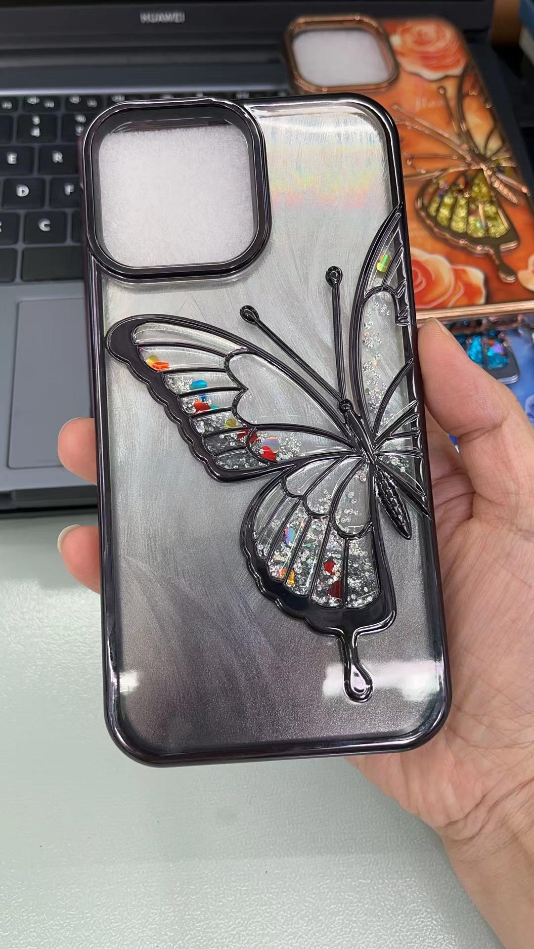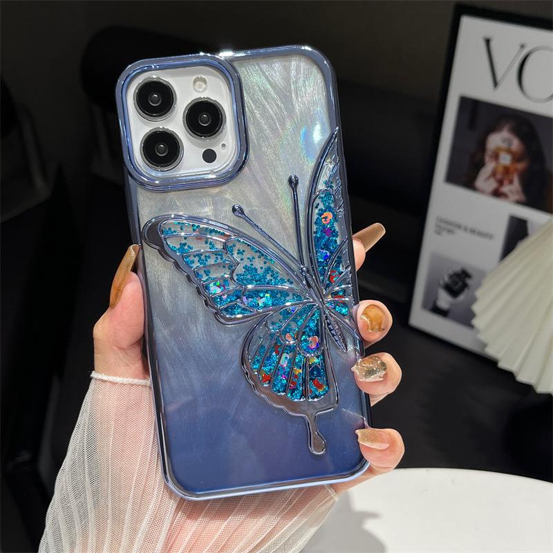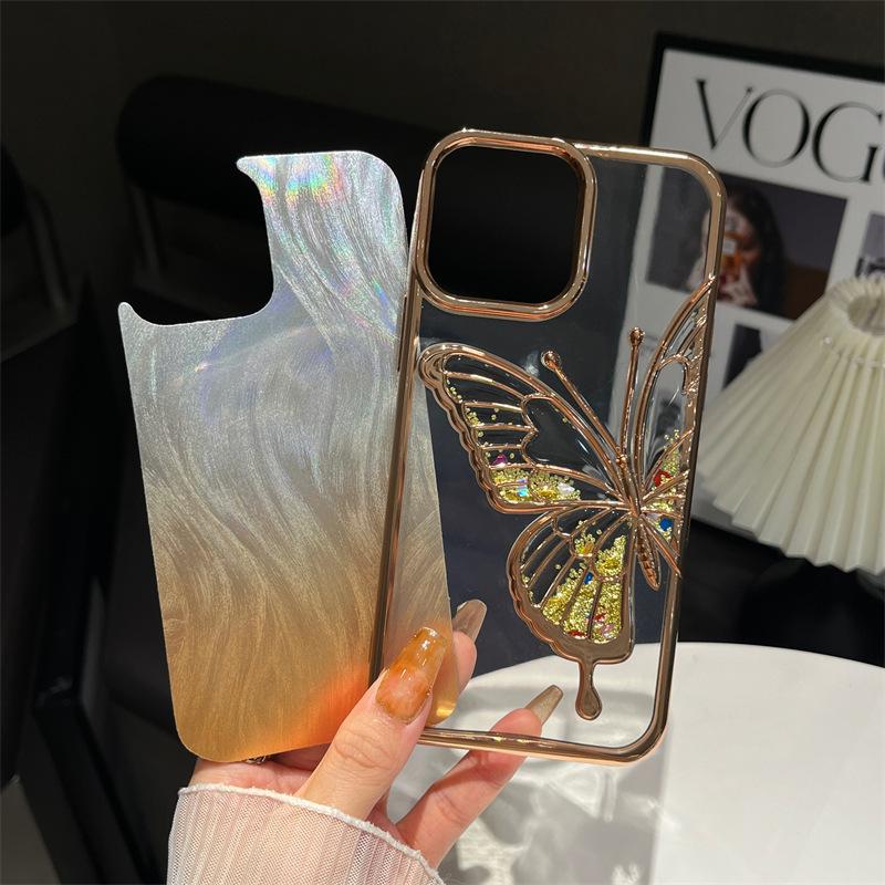 Funda para teléfono de mariposa de arena movediza de nuevo estilo para apple 15promax iphone14/13pro sensación de alto nivel de hilo de pluma