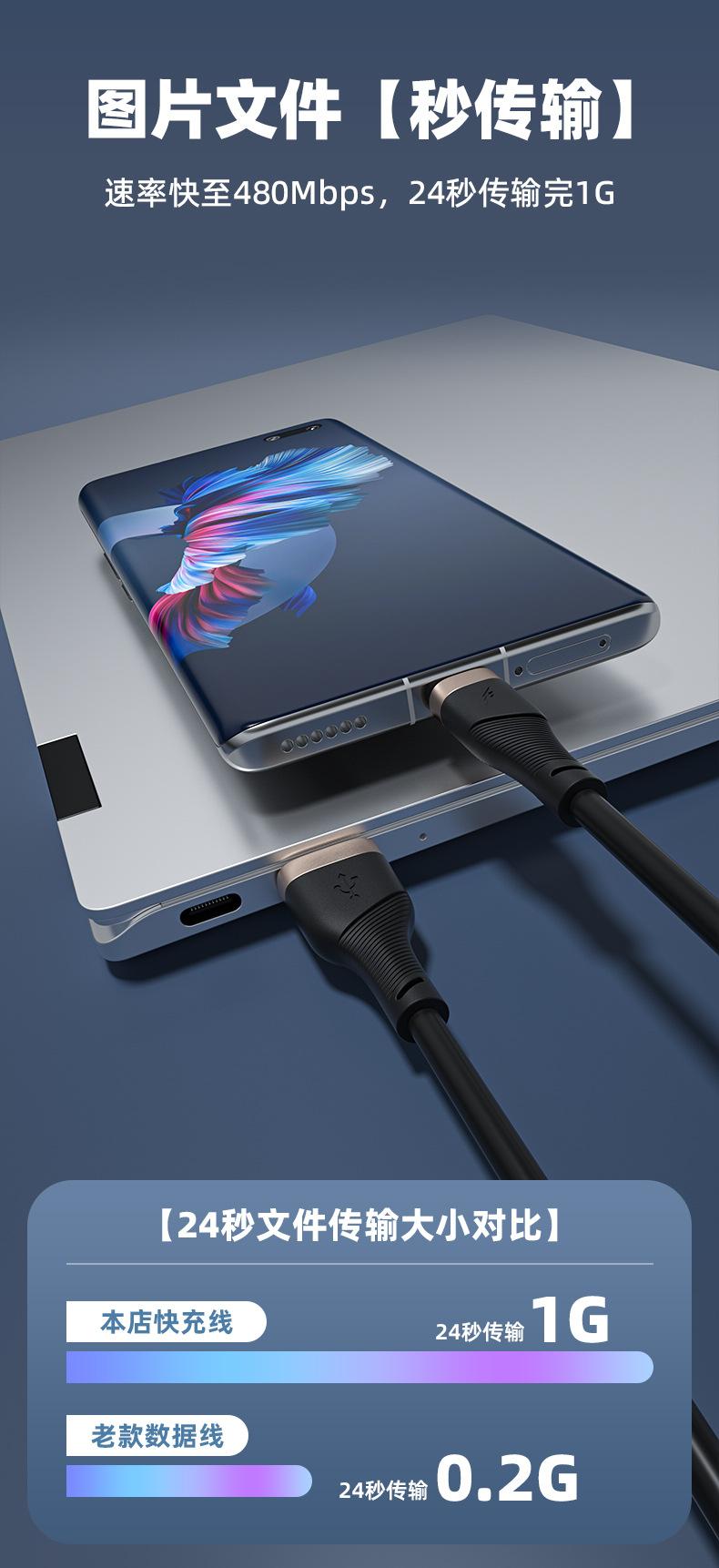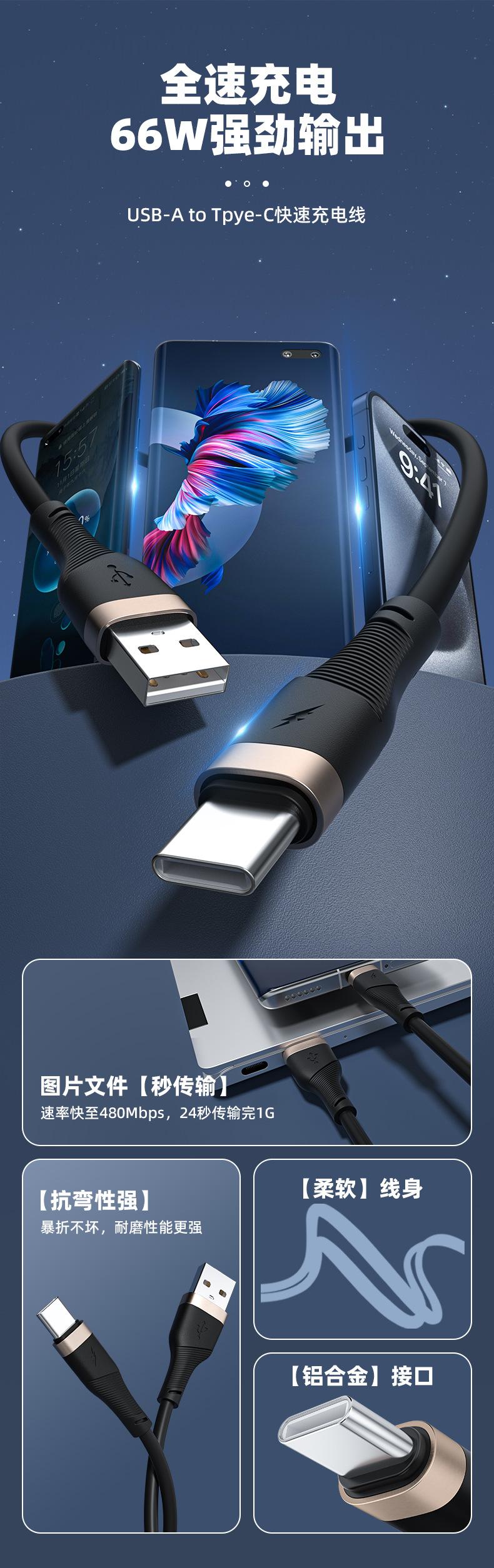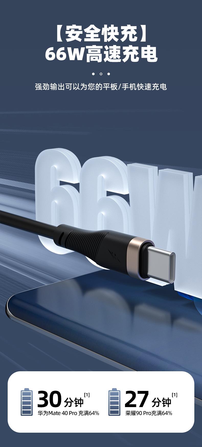 Cable de carga tipo C, cable de datos de carga rápida de 66 W para teléfonos móviles Android, Huawei y Apple 13/14, cable de carga súper rápida.